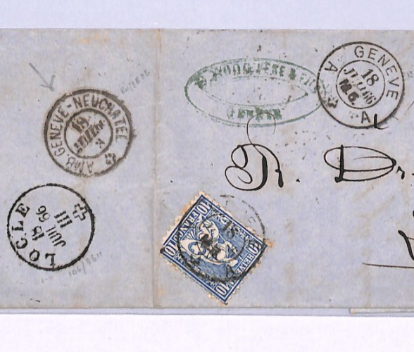 SWITZERLAND Cover *GENEVE-NEUCHATEL* TPO Locle 1866 {samwells}XV124