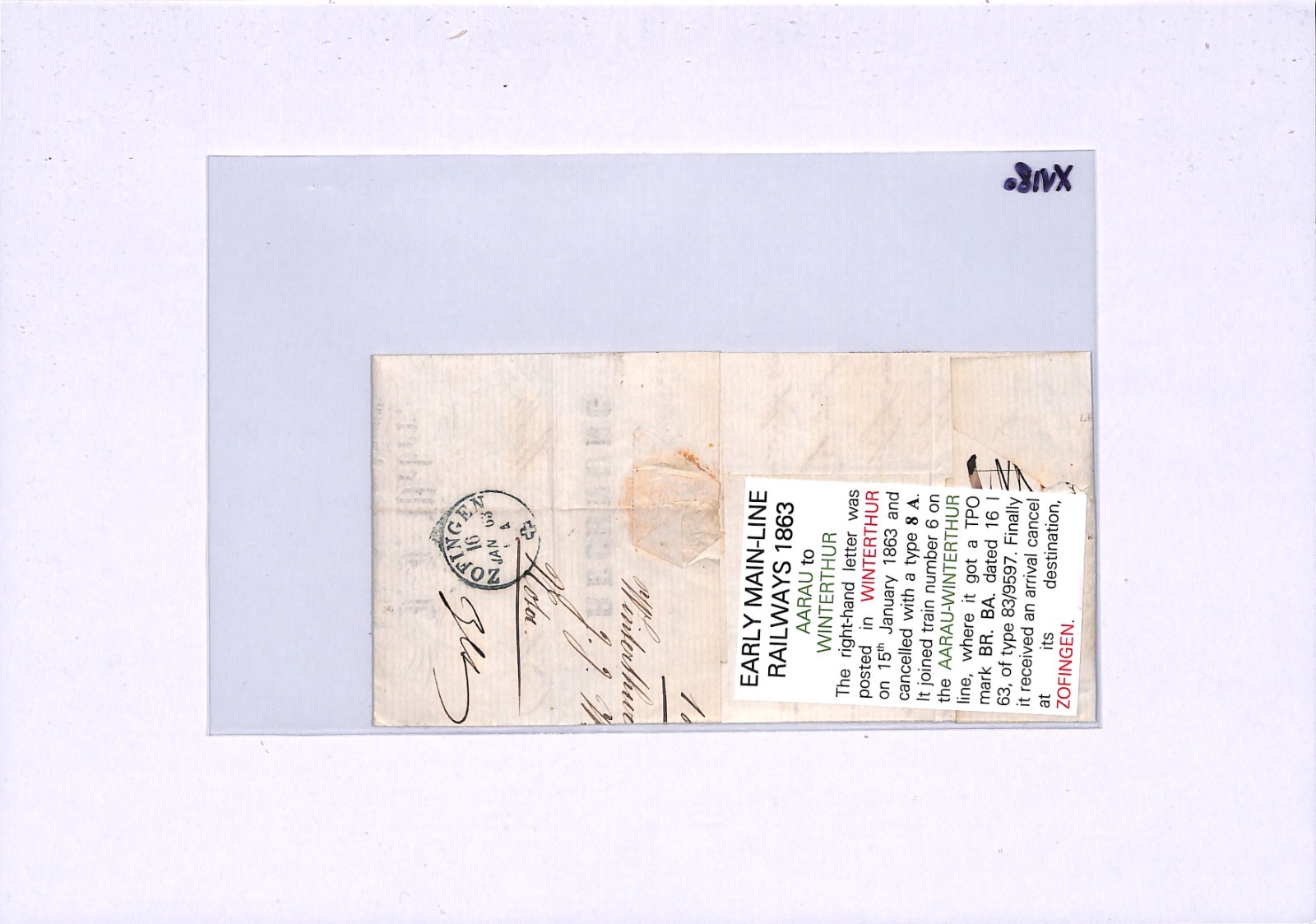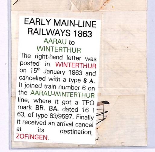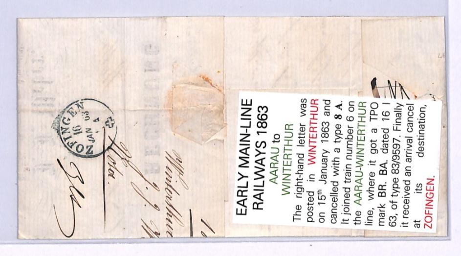 SWITZERLAND RAILWAY TPO *AARAU-WINTERTHUR Z6* Cover Zofingen 1863{samwells}XV180
