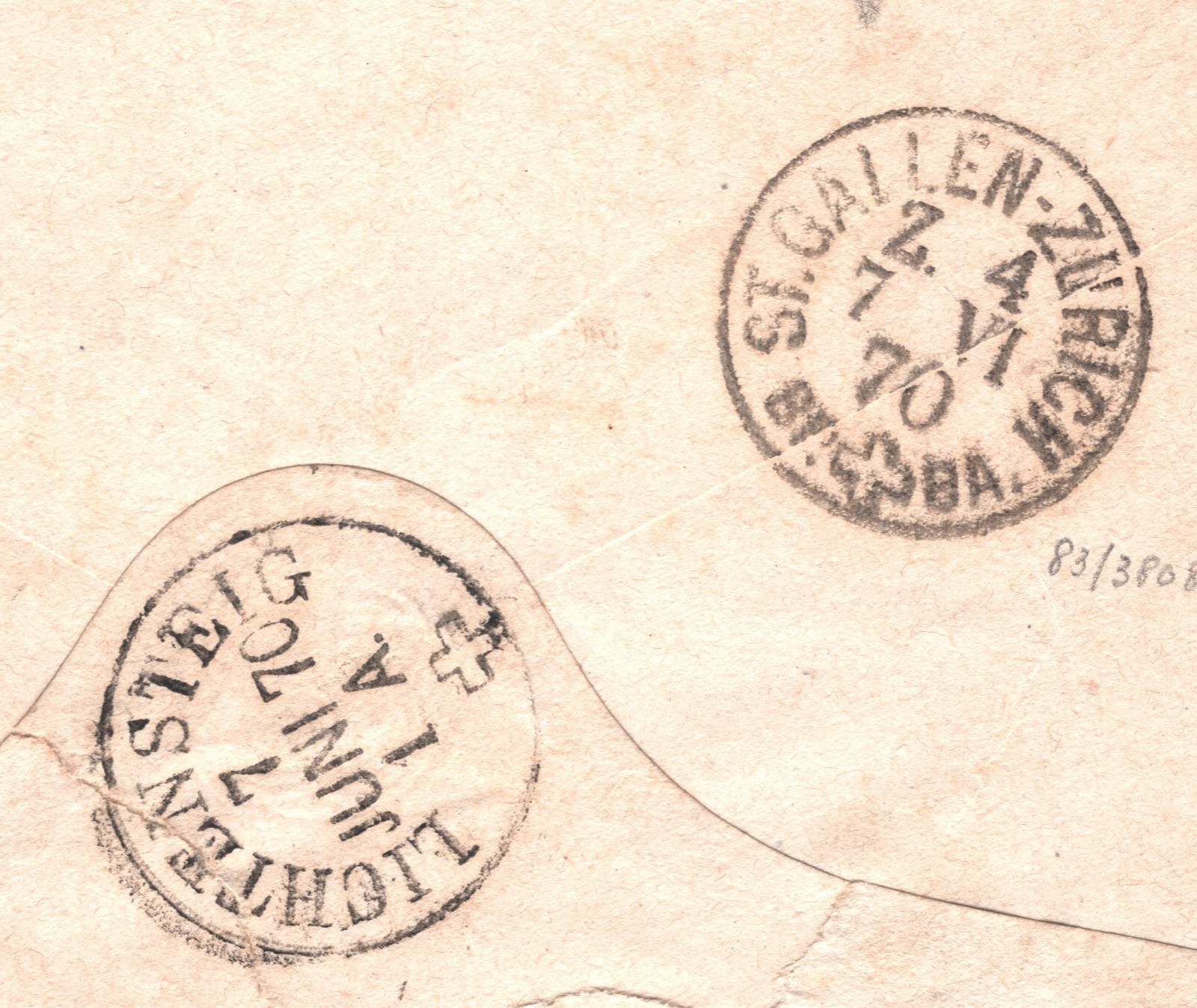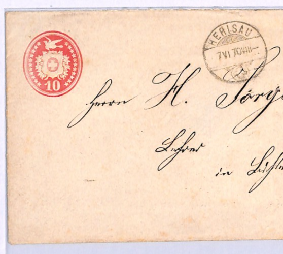 SWITZERLAND Cover *ST GALLEN-ZURICH* TPO Lichtensteig Herisau 1870 XV134