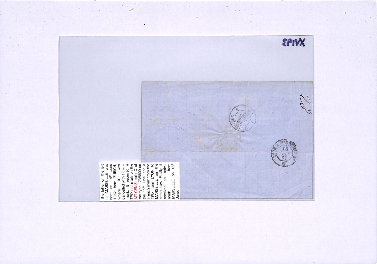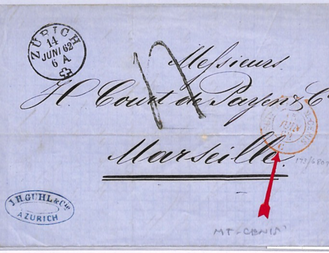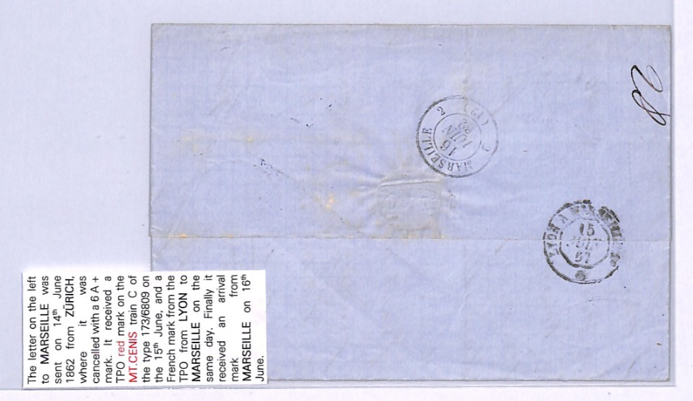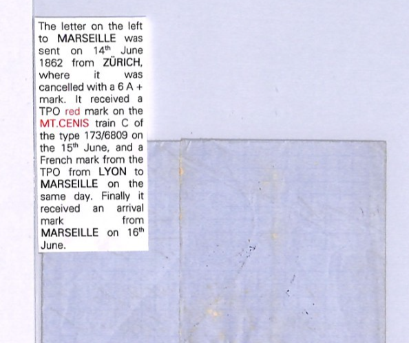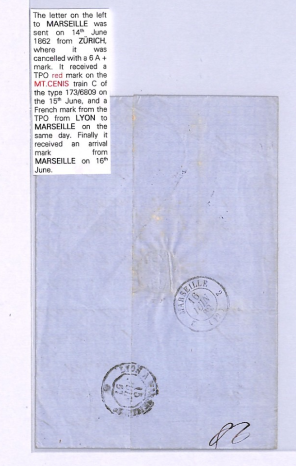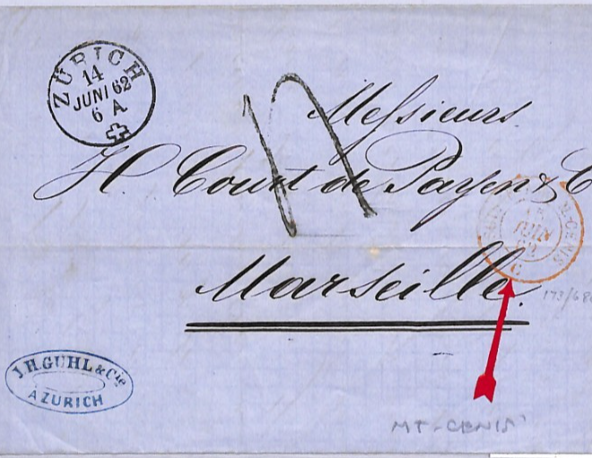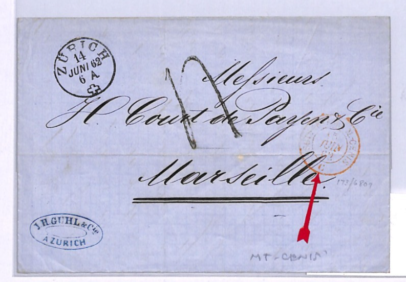 SWITZERLAND RAILWAY Cover *MT CENIS* Zürich France Marseille TPO EL 1862 XV193