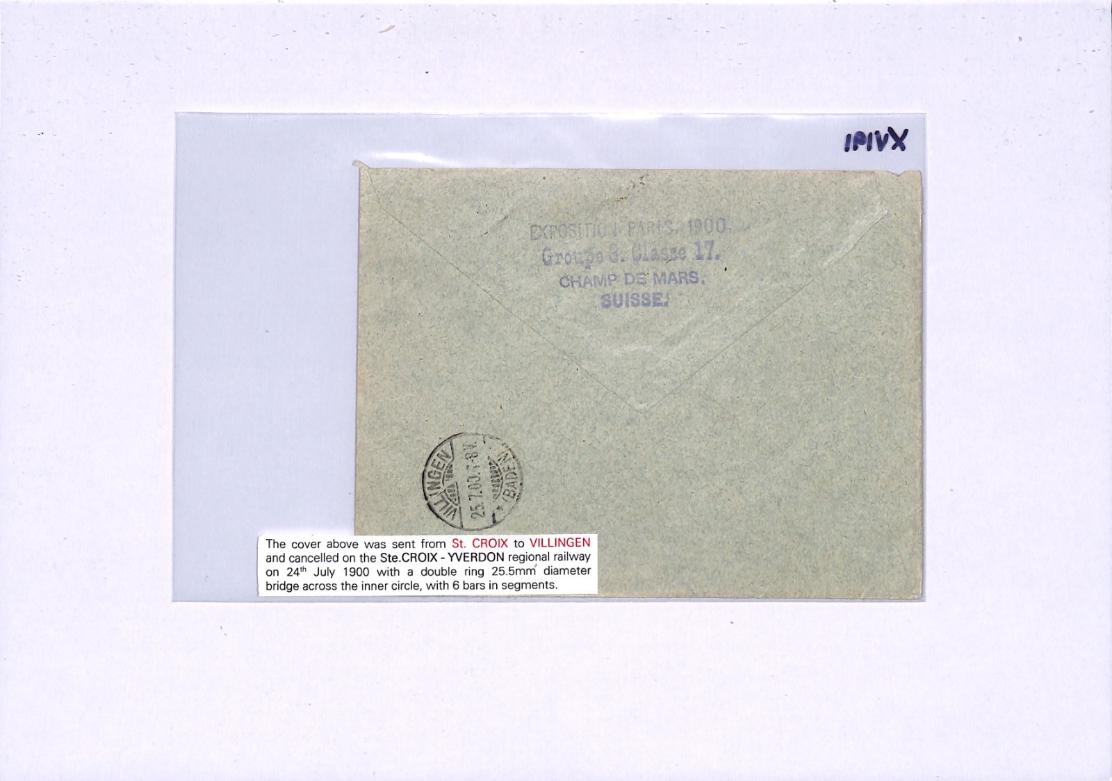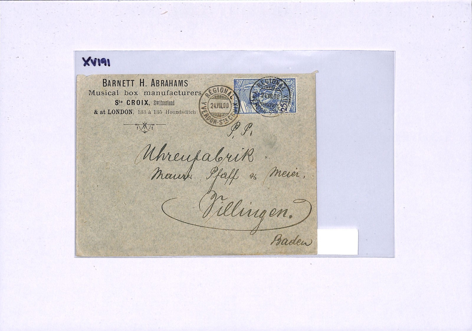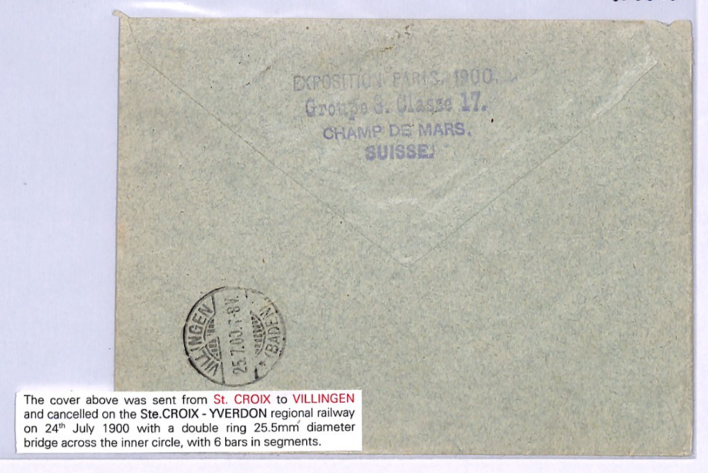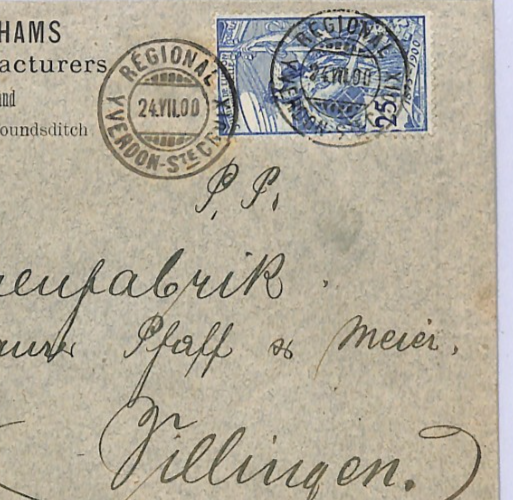 SWITZERLAND RAILWAY TPO *YVERDON-Ste CROIX* Cover Villingen Germany Baden 1900 XV191