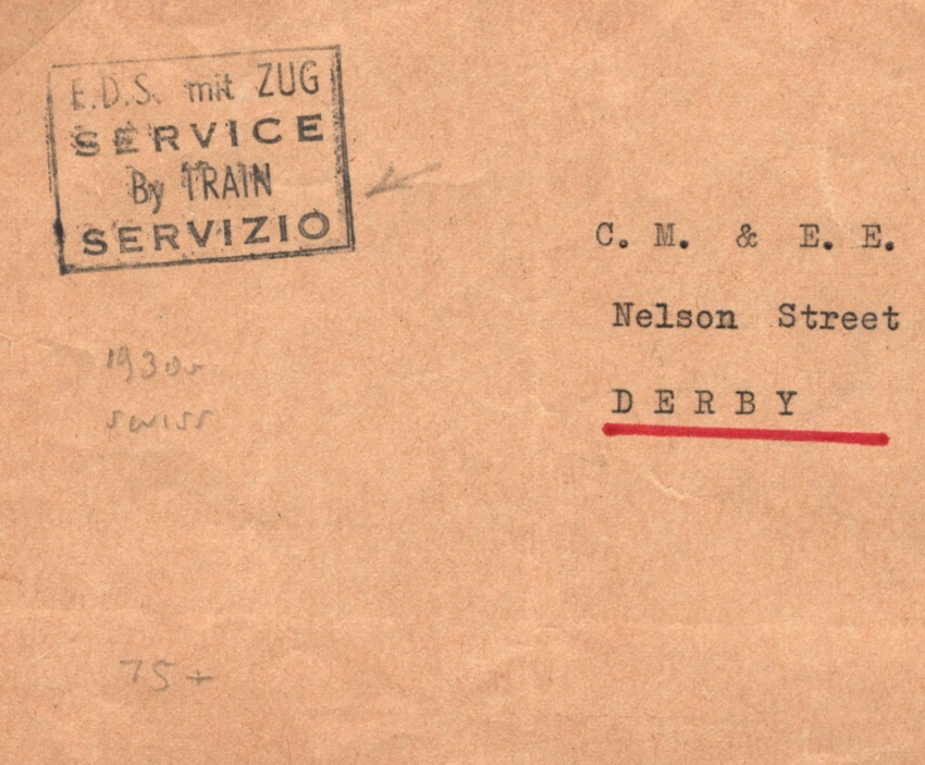 SWITZERLAND Railway Letter GB Derby 1930s {samwells-covers} R252b