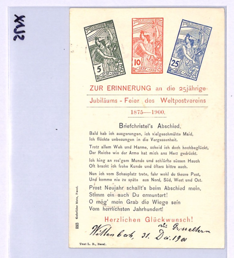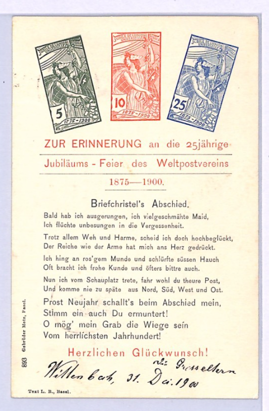 SWITZERLAND *UPU* JUBILEE Stamps ILLUSTRATED Colour 1900 Card ANNIVERSARY XV75