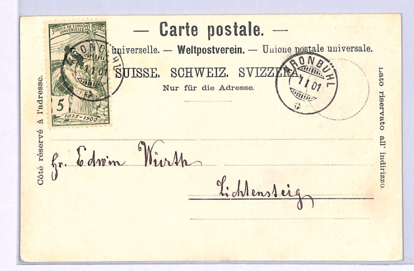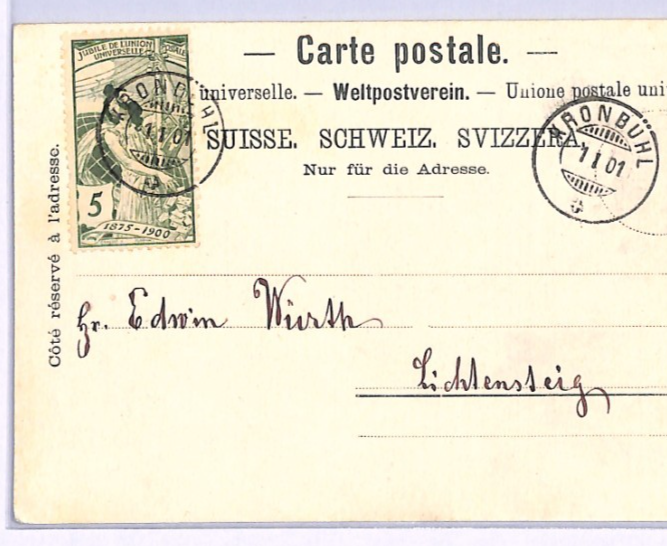 SWITZERLAND Card 1900 UPU ANNIVERSARY Kronbühl Lichtensteig {samwells-covers}XV75