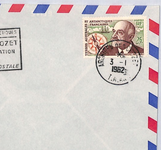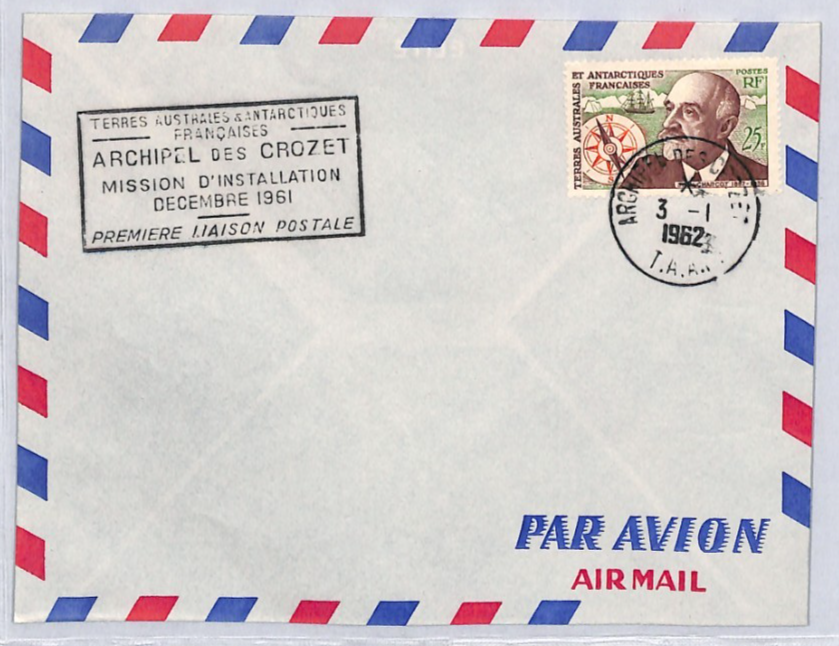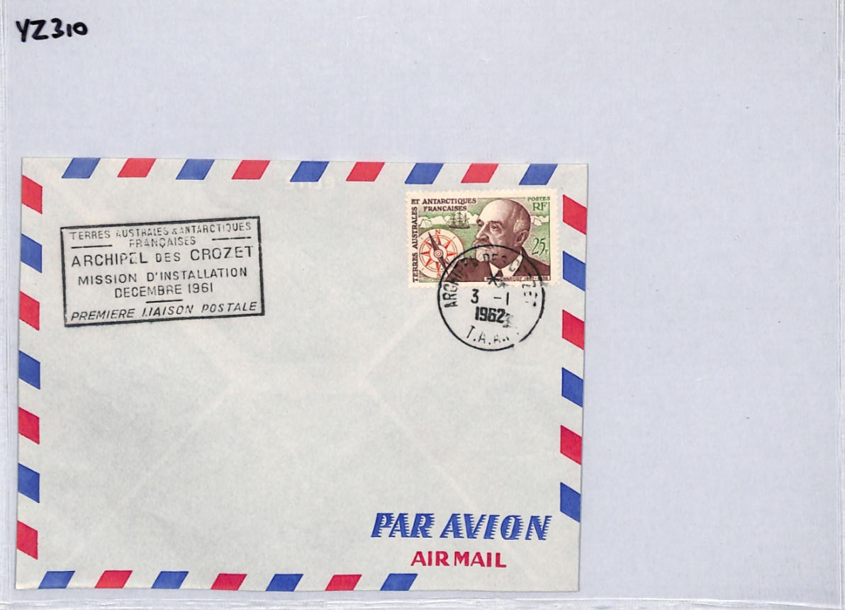 TAAF 1961 25f *CROZET* Cover 1962 CDS First Air Mail Cachet ANTARCTIC YZ310