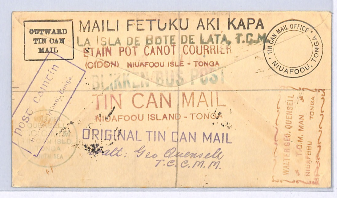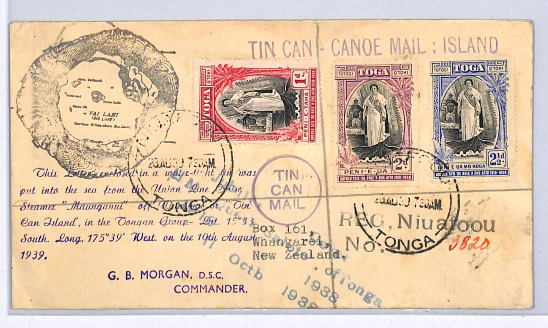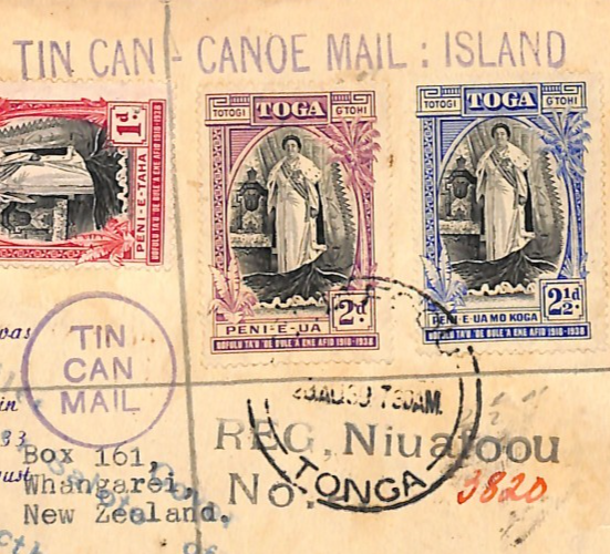 TONGA Cover TIN CAN CANOE MAIL Niuafoou New Zealand Whangarei 1938 WY285