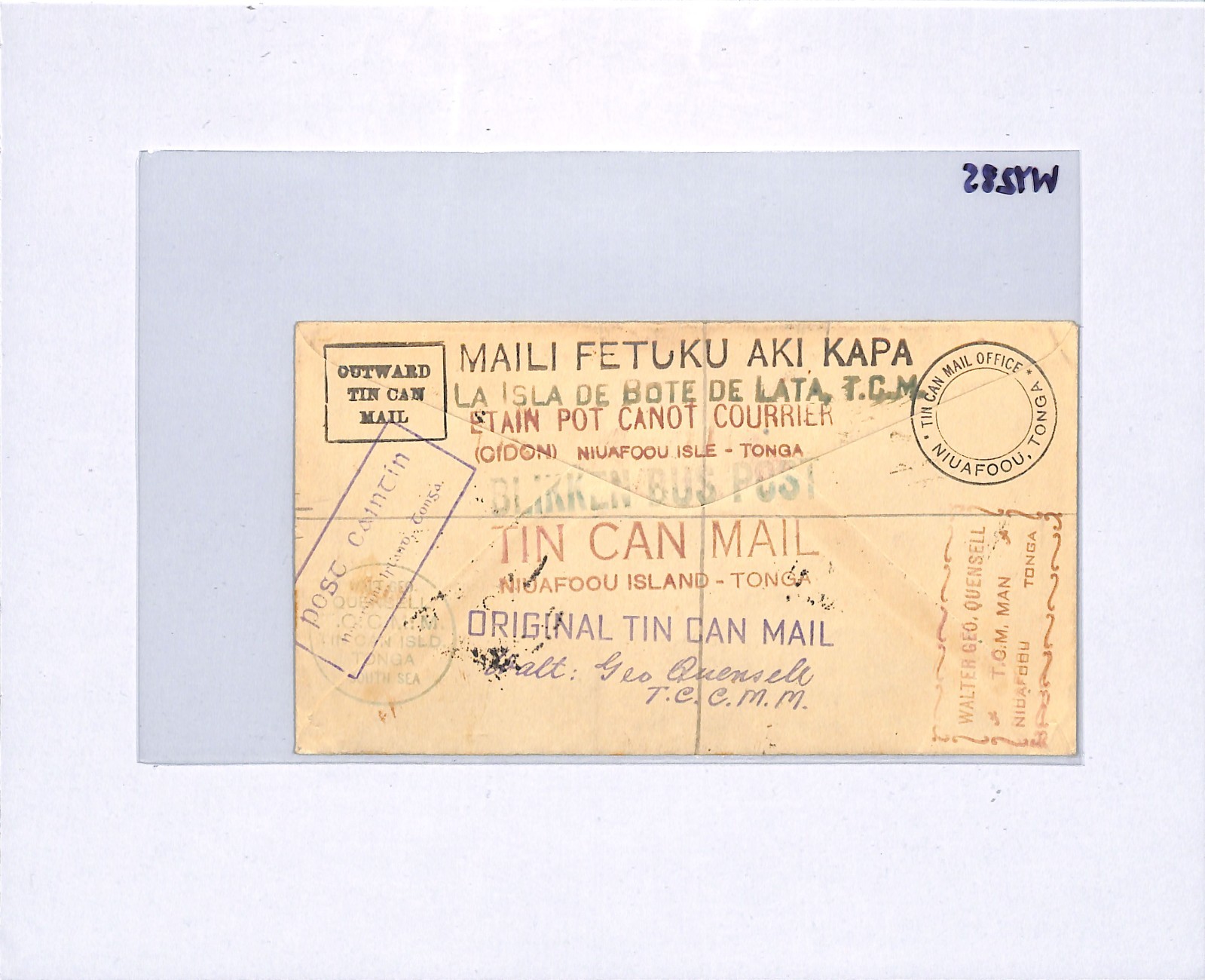 TONGA Cover 1939 TIN CAN CANOE MAIL Niuafoou QUEEN SALOTE Anniv Set (1938) WY285