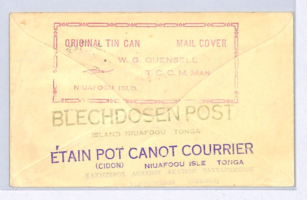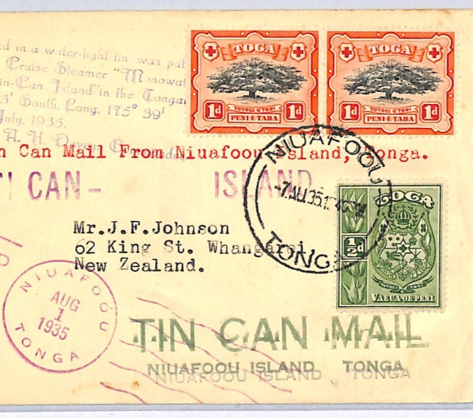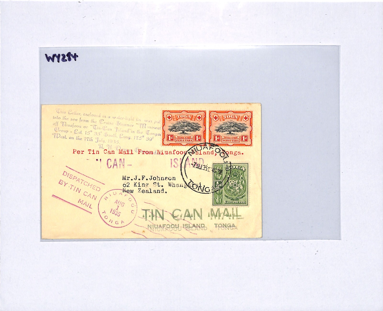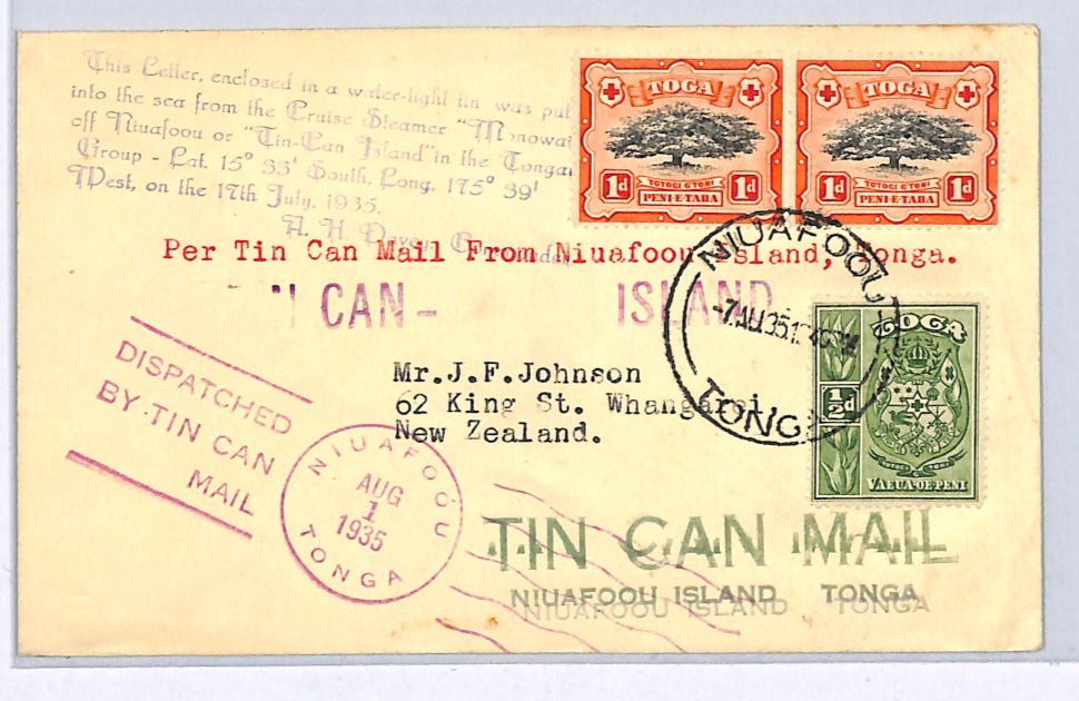 TONGA Cover TIN CAN CANOE MAIL Niuafoou New Zealand Whangarei 1935 WY284