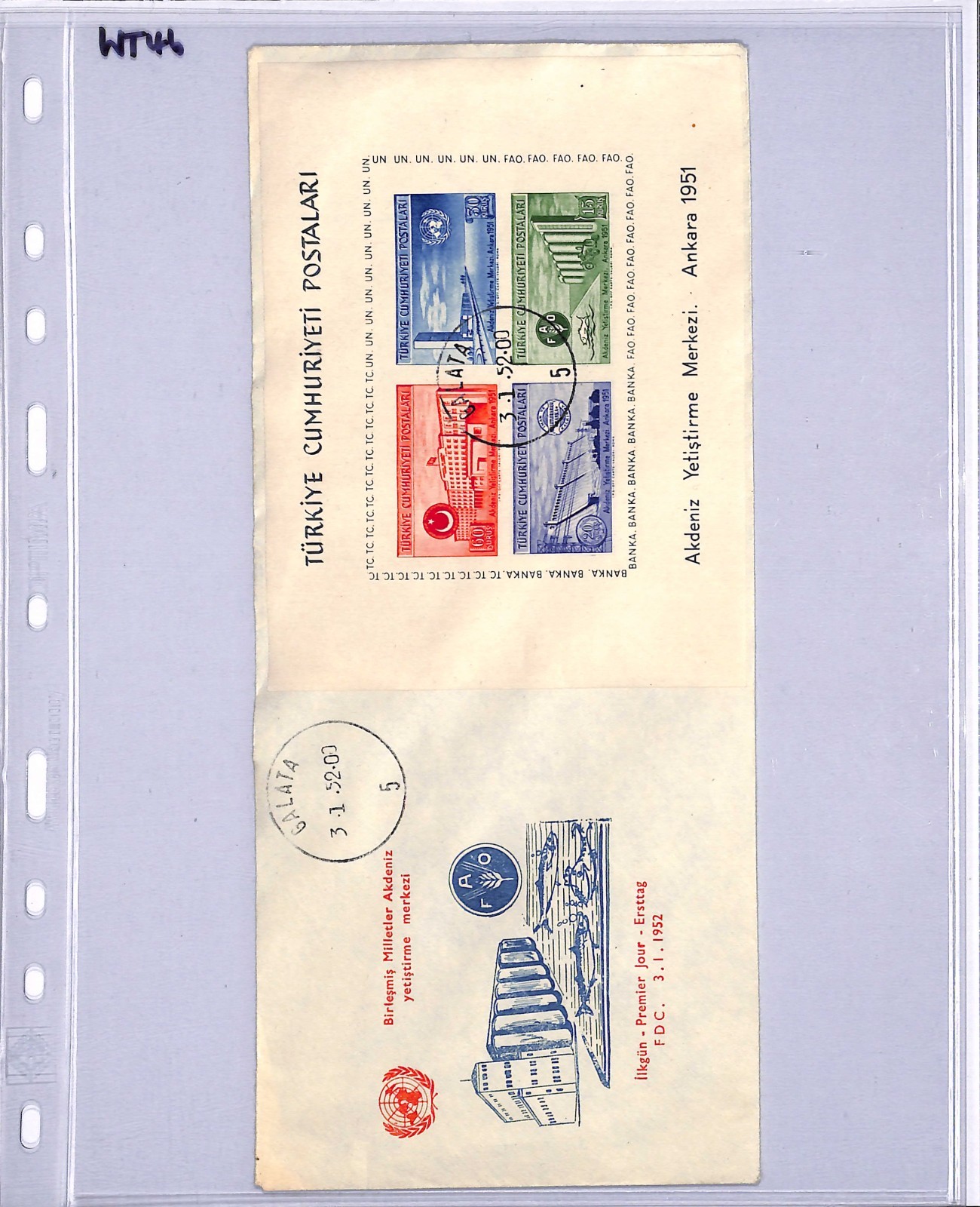 TURKEY 1952 FDC Illustrated UNITED NATIONS Miniature Sheet UN FAO First Day Cover WT46