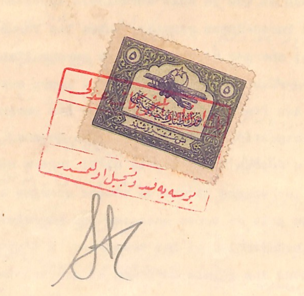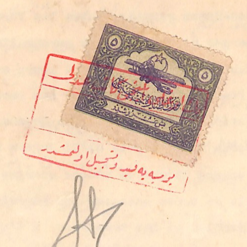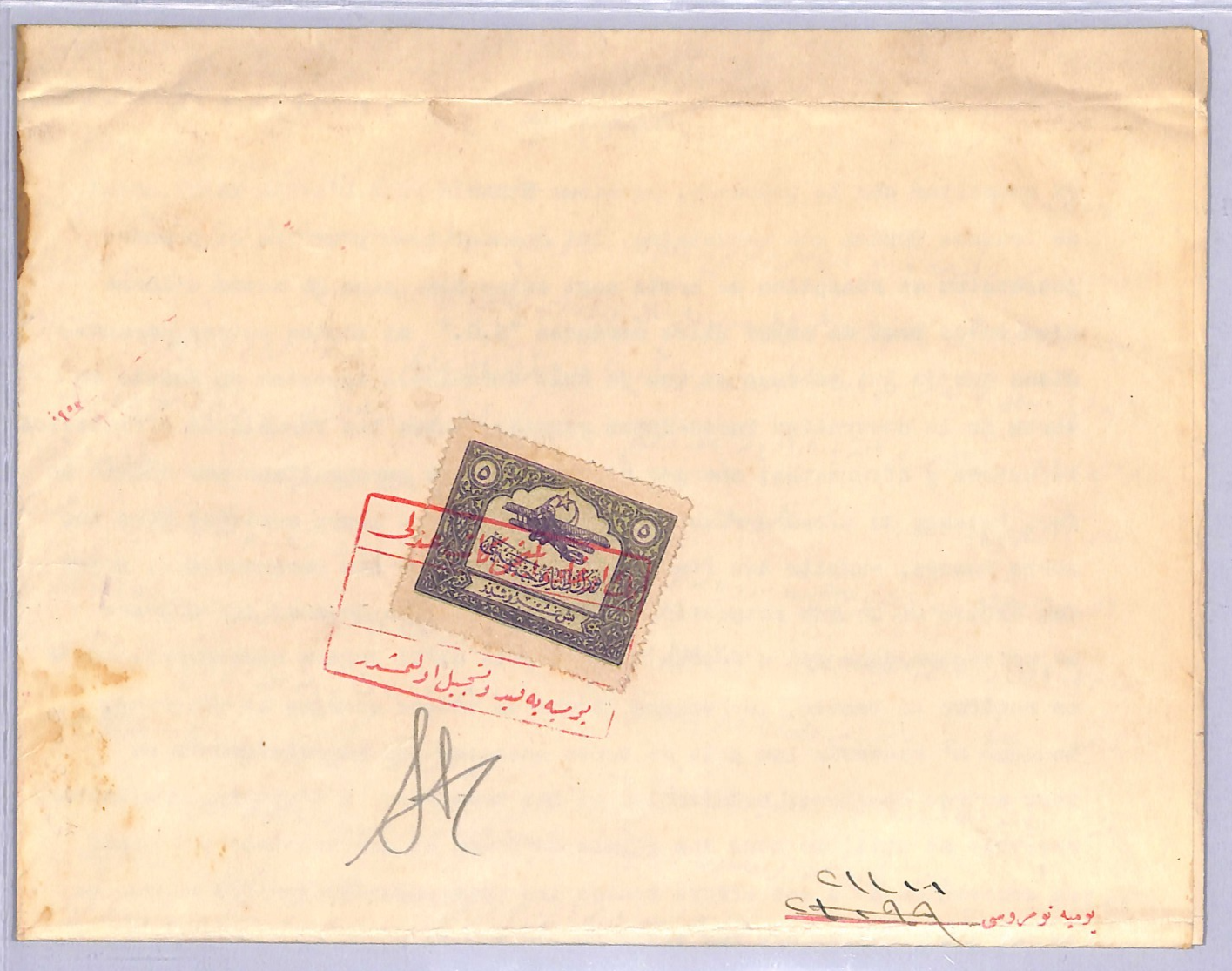 TURKEY *AIR FUND* 5g Stamp c1926 BIPLANE Adana Document TAX Revenue Odessa WT34