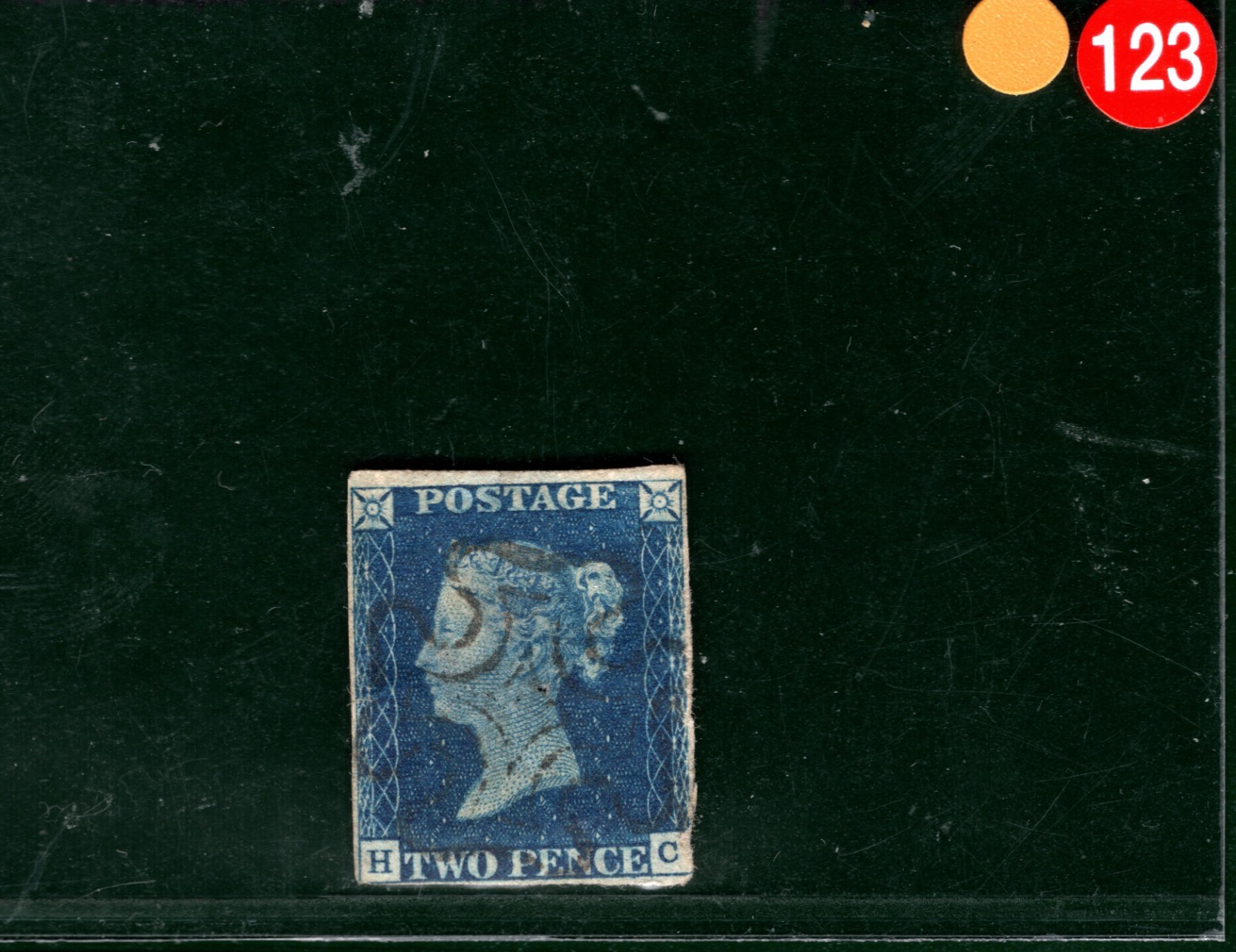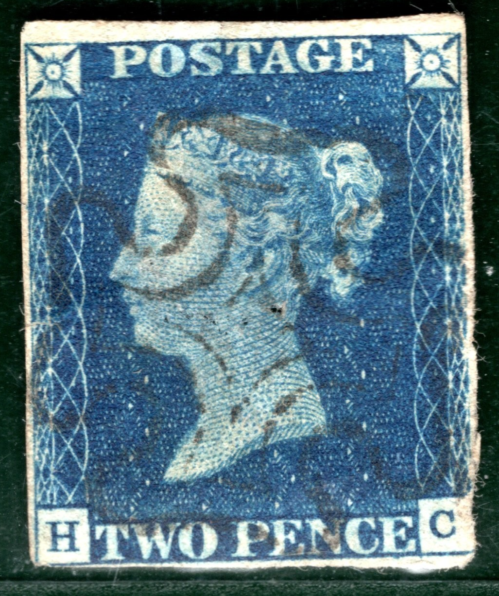 TWO PENCE DEEP BLUE GB 1840 QV Stamp SG.4 2d Plate 2 (HC) DS7 Cat £1,400- YOR123