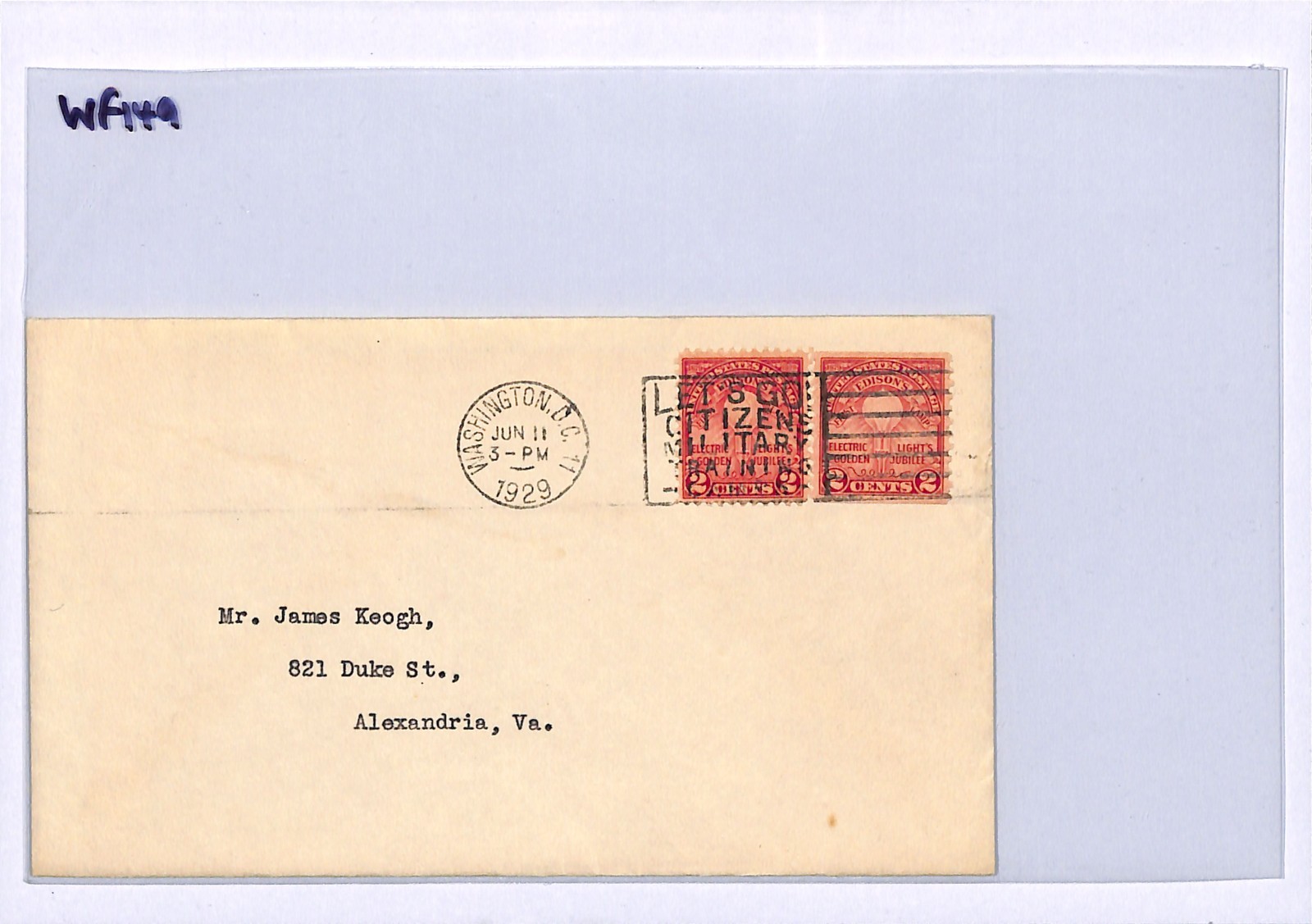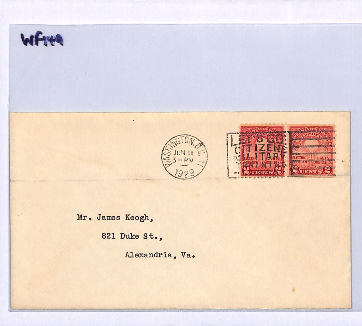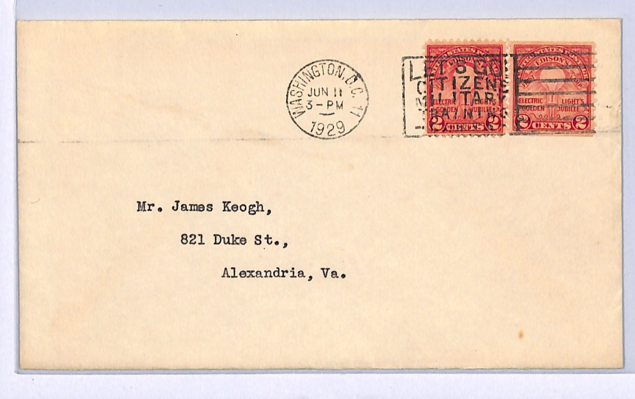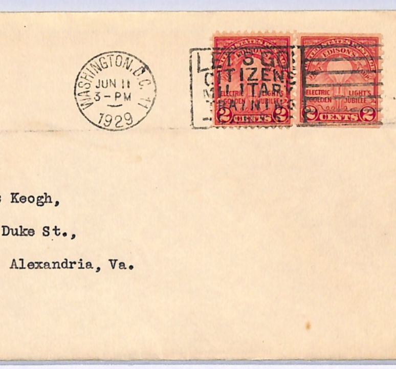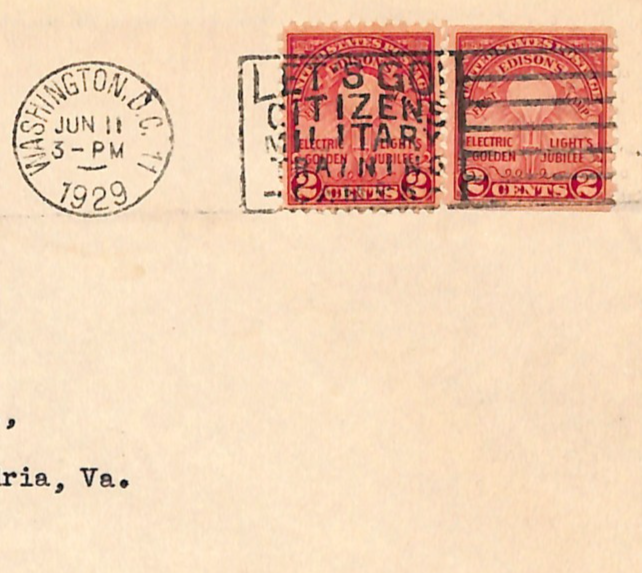 USA Cover Washington CITIZEN TRAINING MILITARY SLOGAN Alexandria VA 1929 WF149