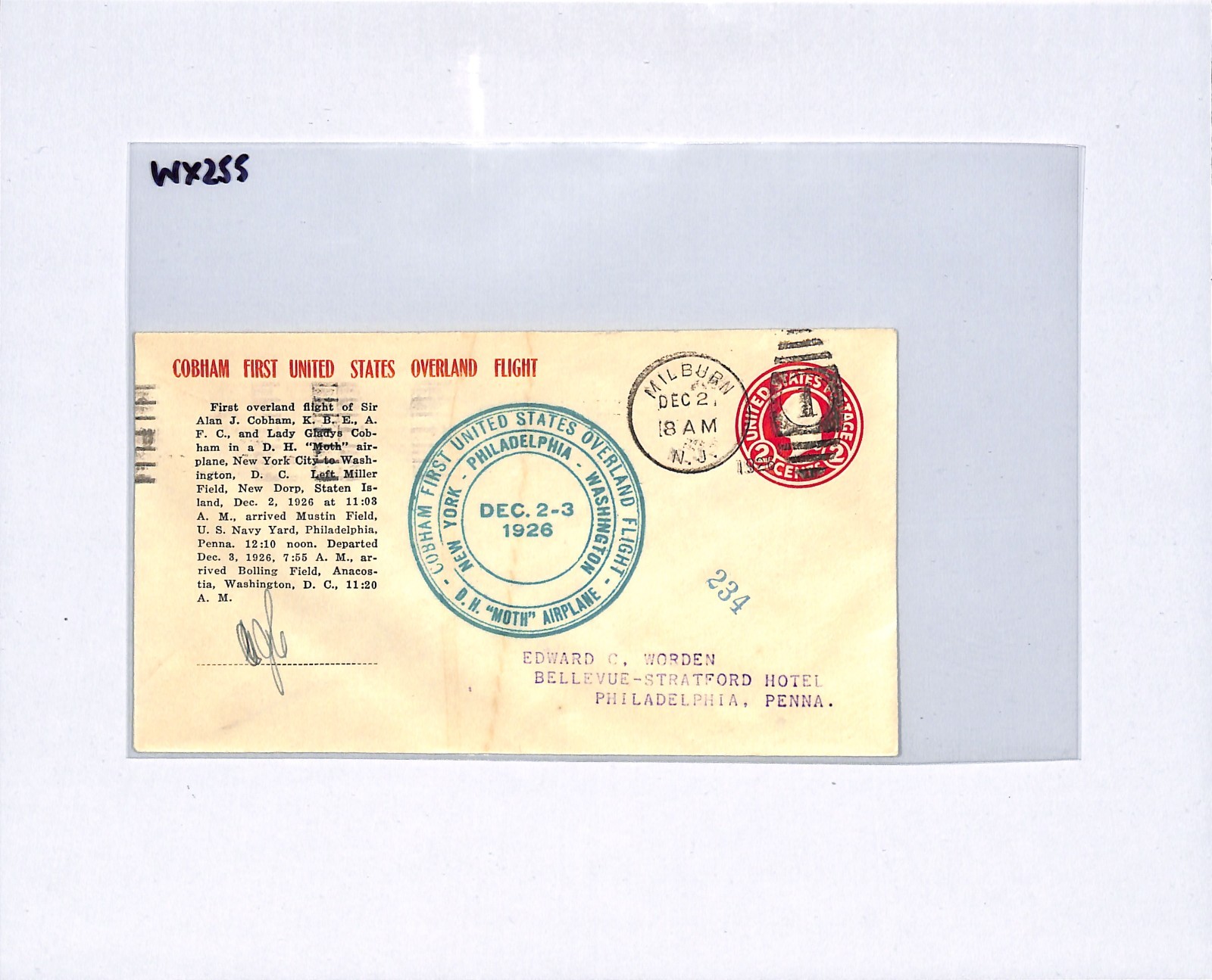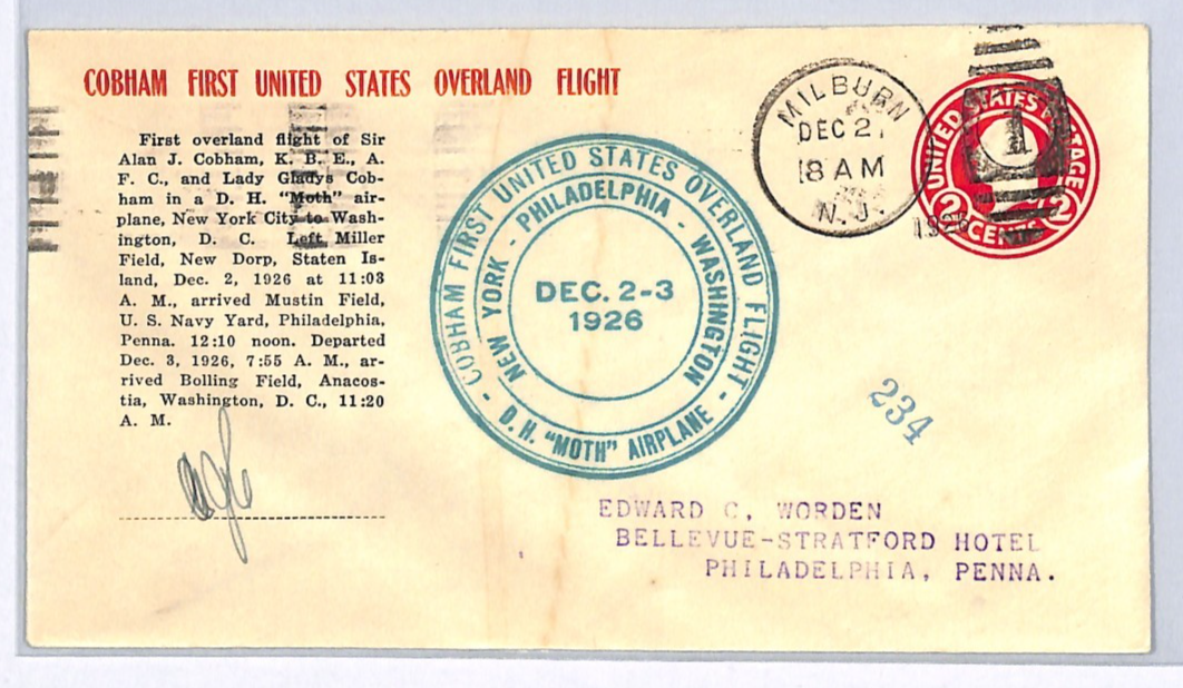 USA Air Mail Cover 1926 COBHAM FIRST FLIGHT Milburn NJ Philadelphia WX255