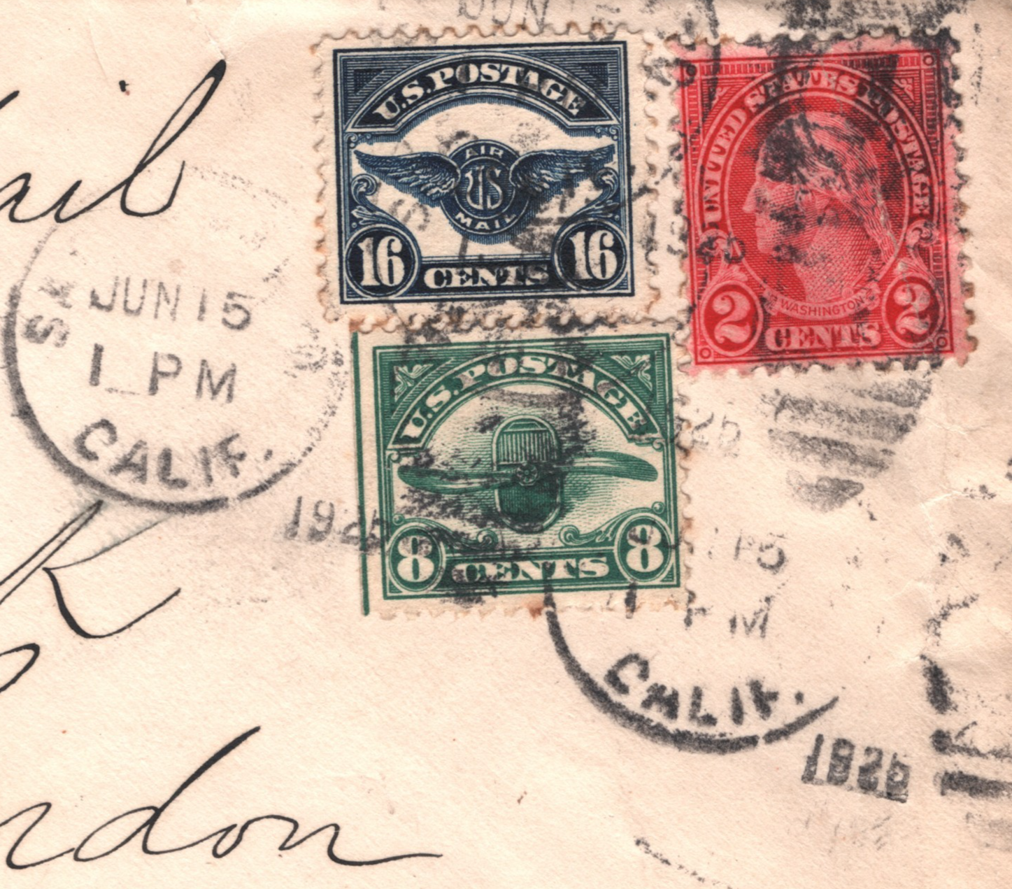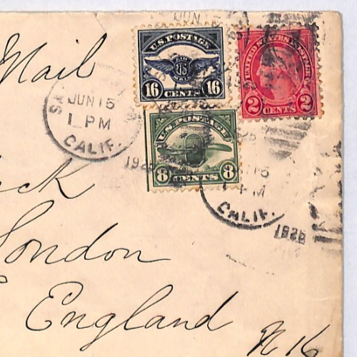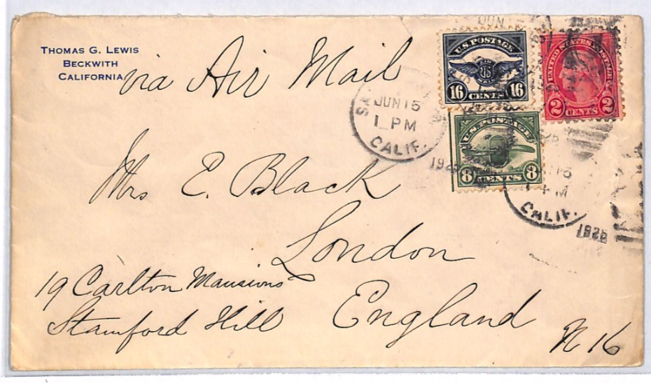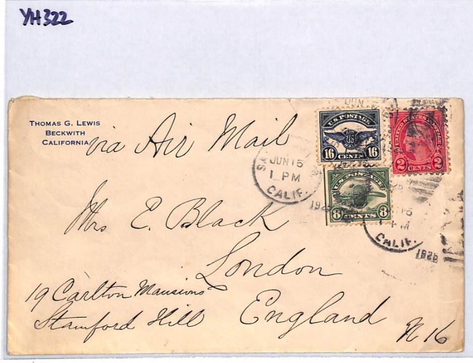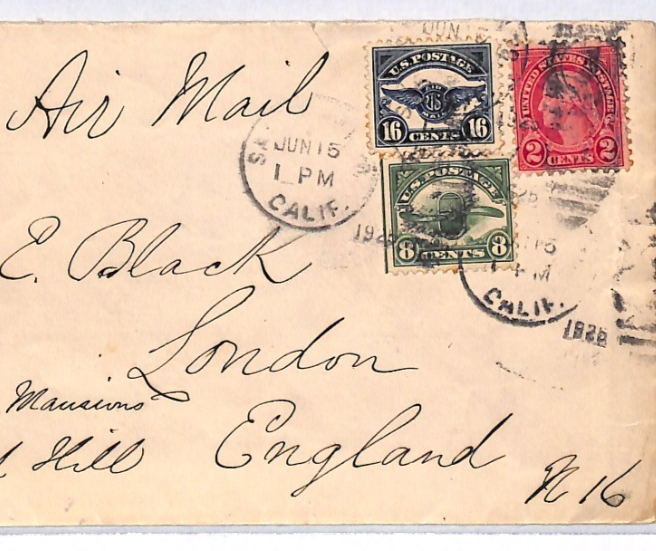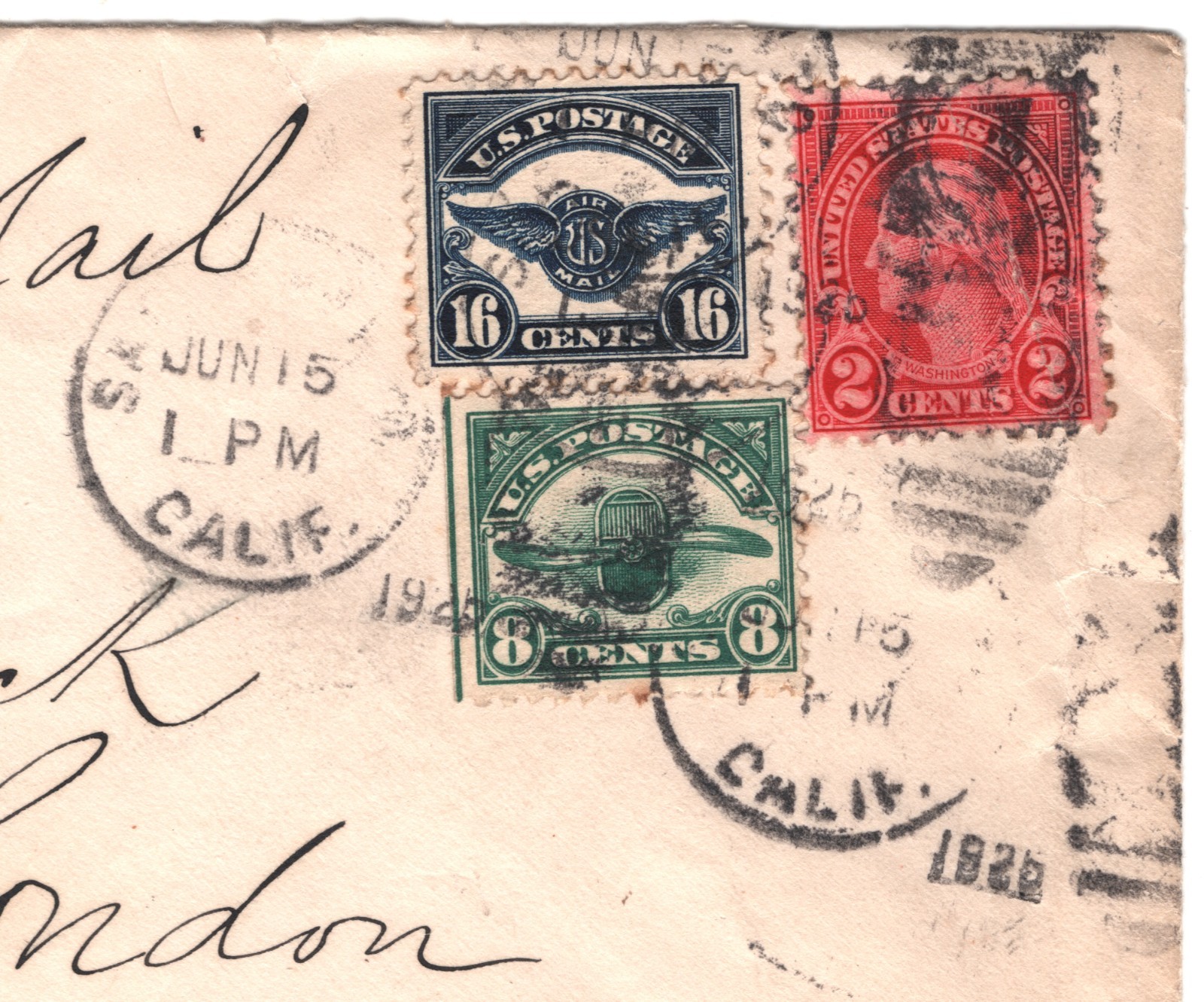 USA AIR MAIL 16c #C5 Cover 8c #C4 (Beckwith) CALIFORNIA 1926 NYC London YH322