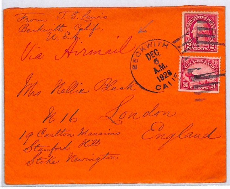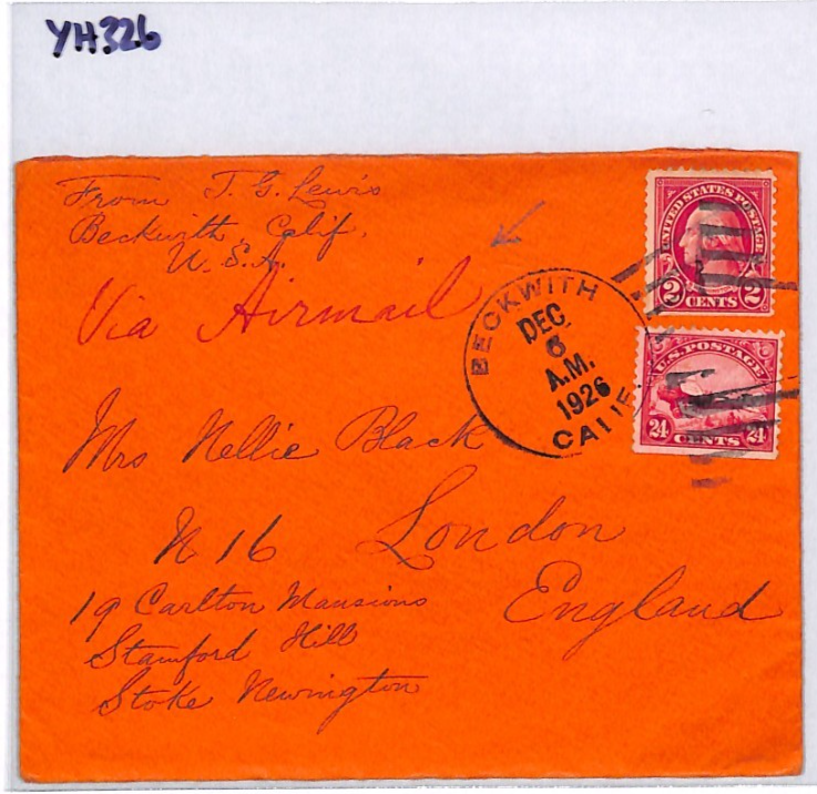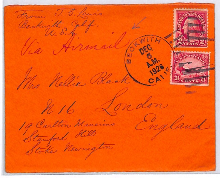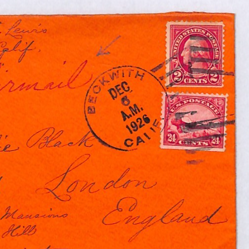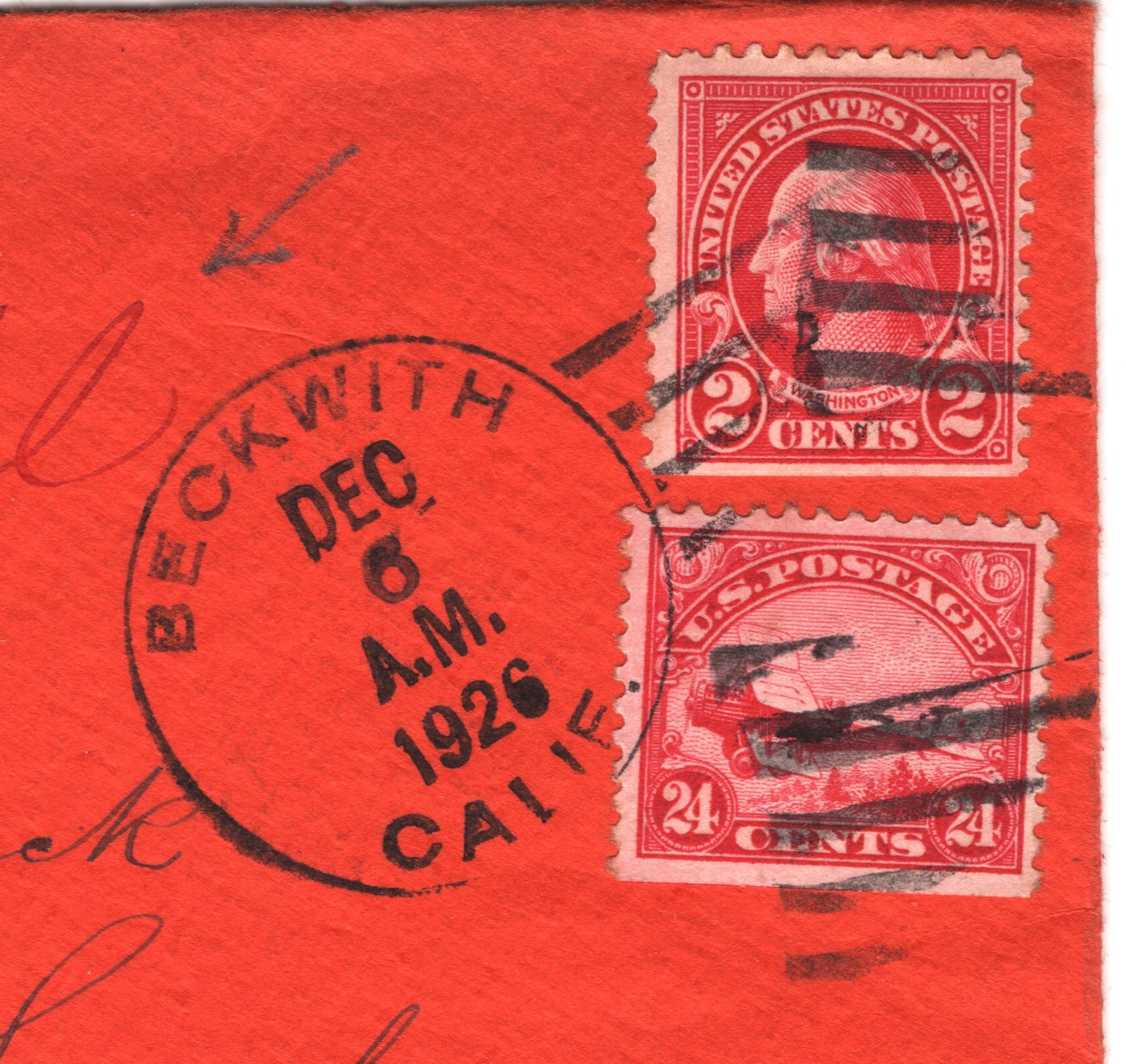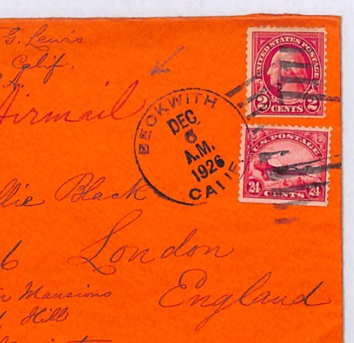 USA AIR MAIL 24c #C6 BIPLANE Red Cover *Beckwith* CALIFORNIA 1924 London YH326
