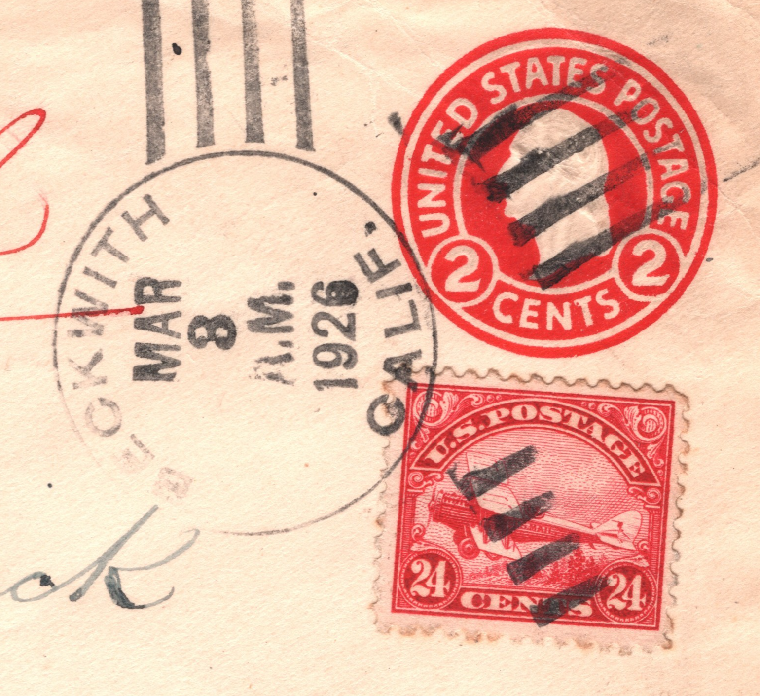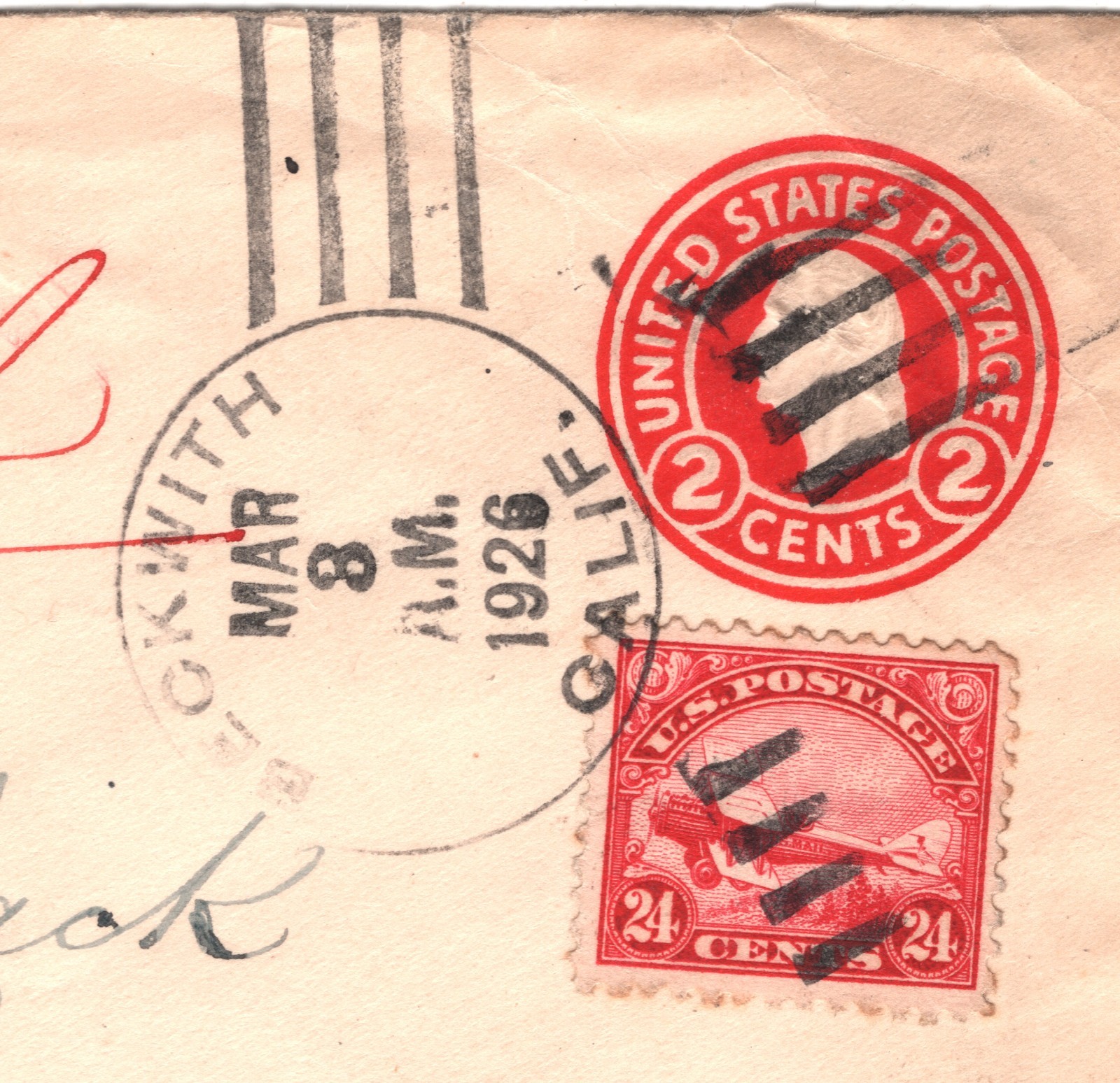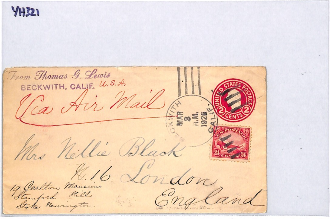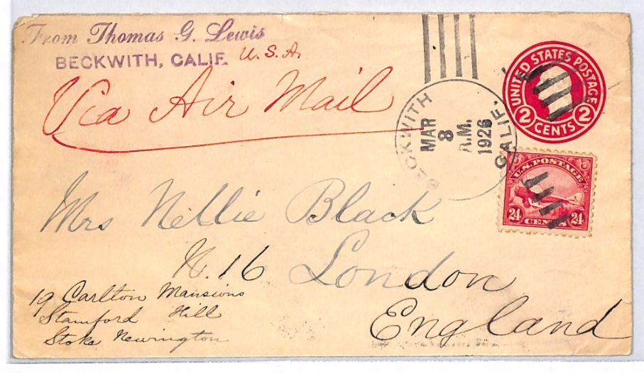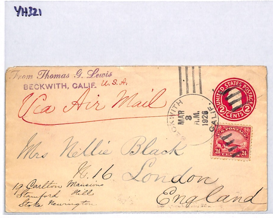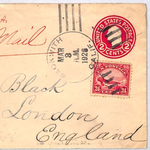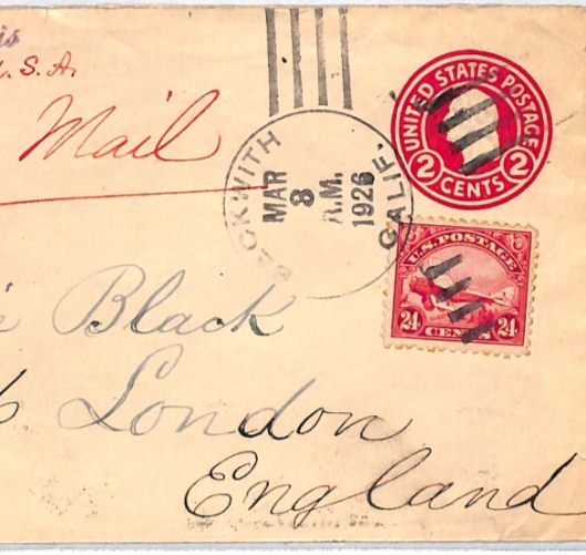 USA AIR MAIL 24c #C6 Cover 2c Postal Stationery CALIFORNIA 1926 NYC London YH321