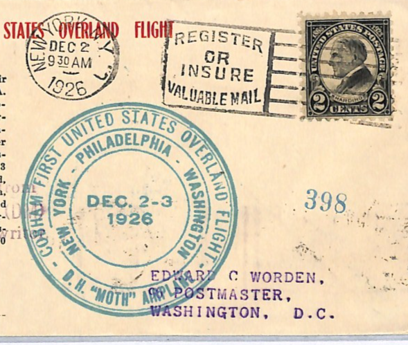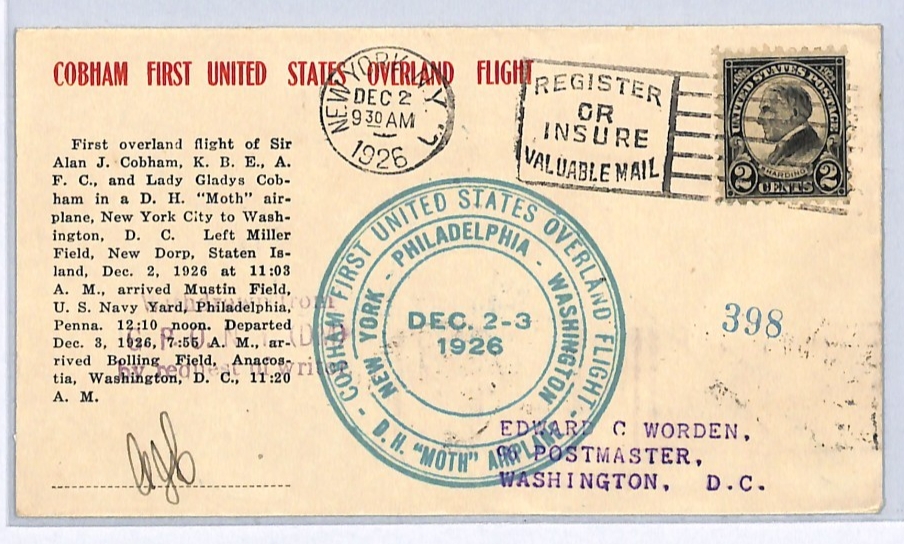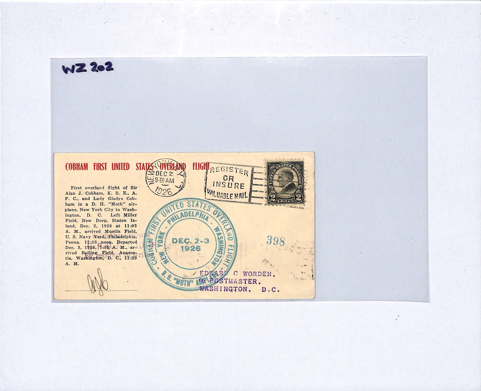 USA Air Mail Card 1926 COBHAM FIRST FLIGHT New York Washington DC WZ202