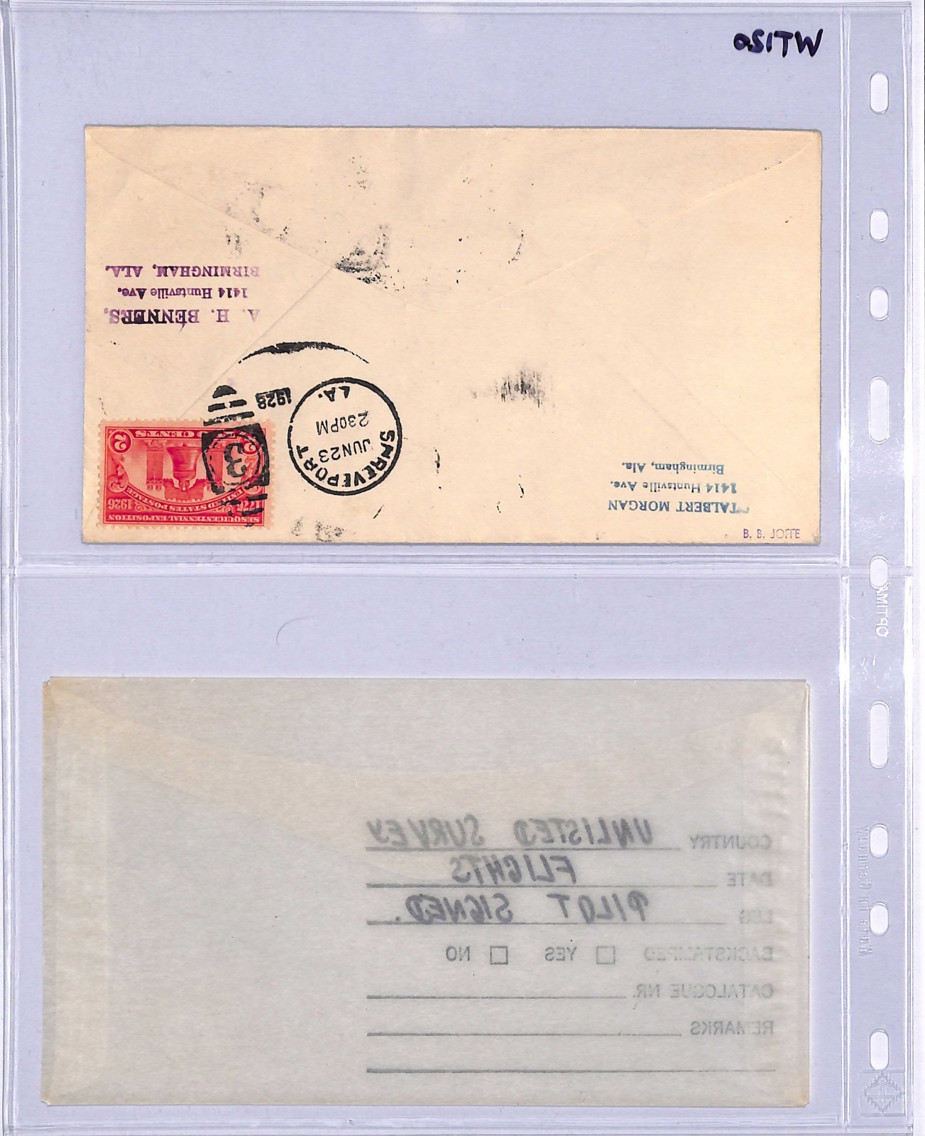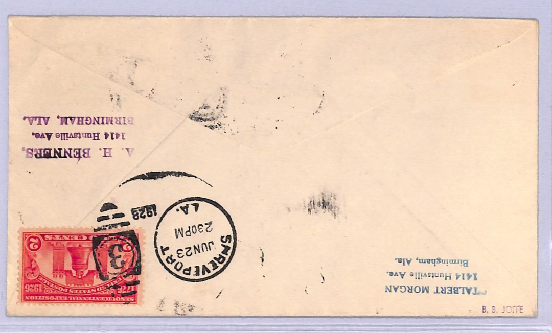 USA Air Mail Cover SURVEY FLIGHT 1928 Pilot Signed Birmingham AL Shreveport LA WT120