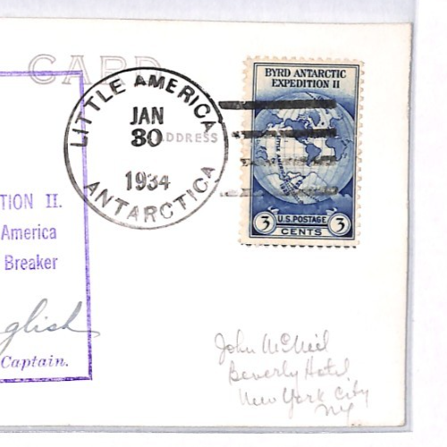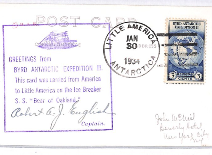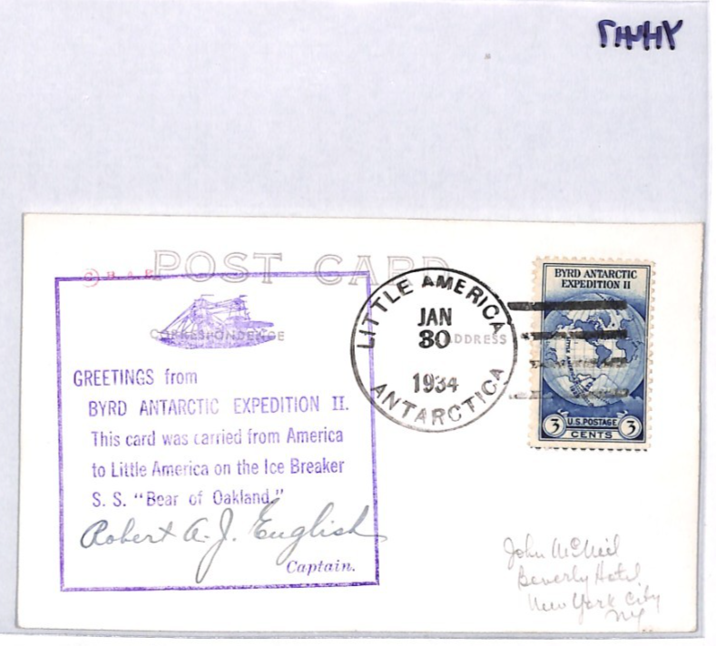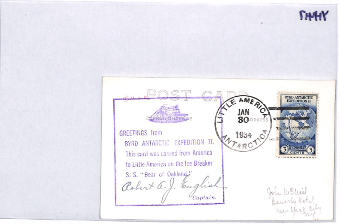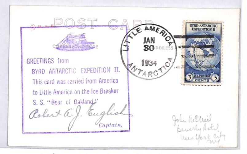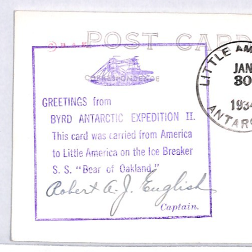 USA ANTARCTIC Byrd Expedition 1934 Postcard SIGNED *English* SHIP Captain YH417