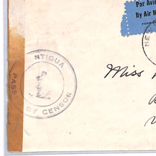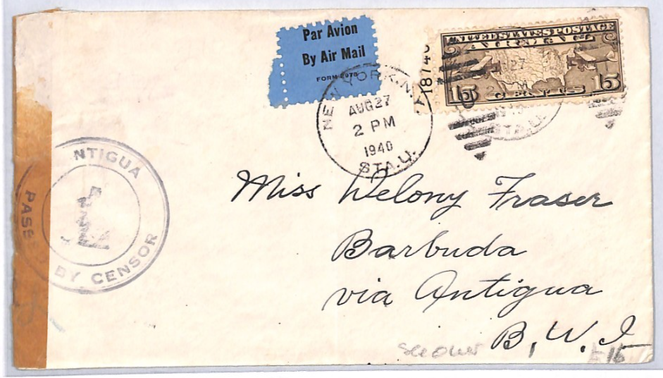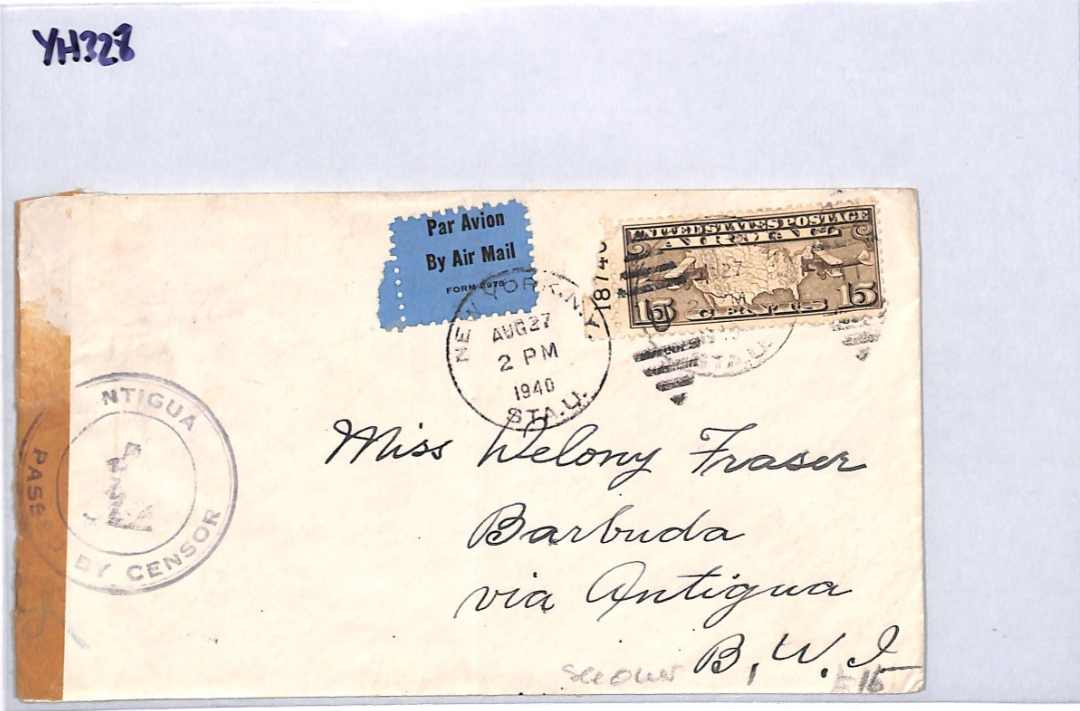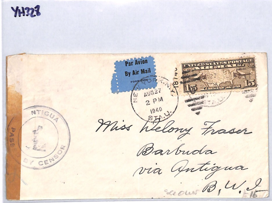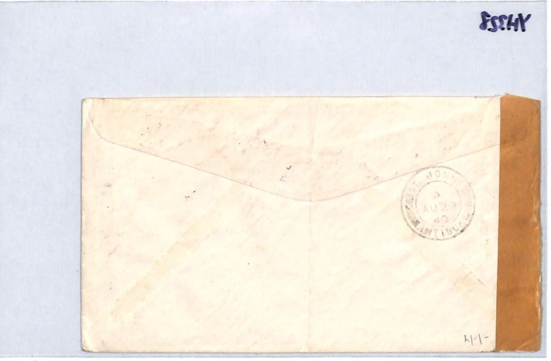 USA *ANTIGUA* BWI CENSOR WW2 Air Mail 1940 Cover 15c {samwells-covers}YH328