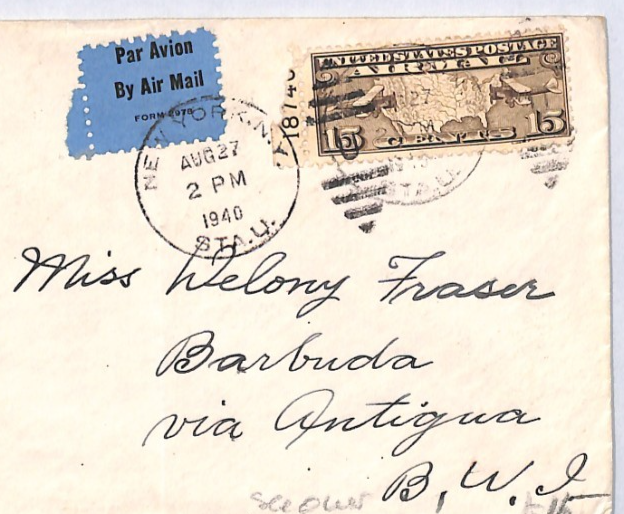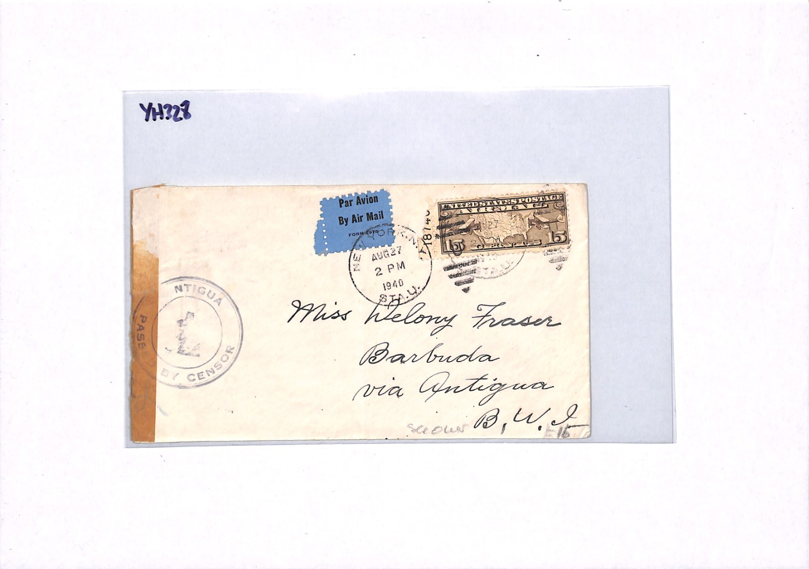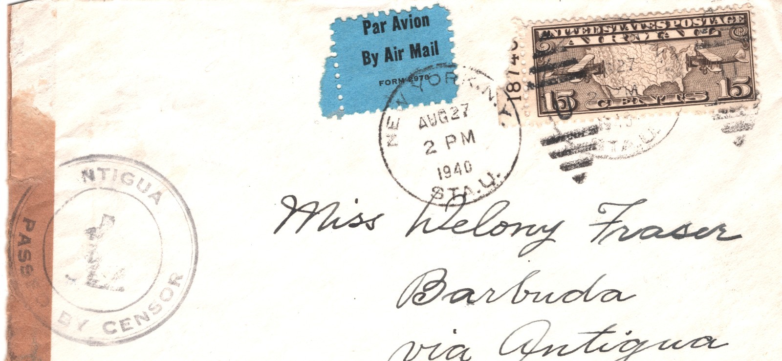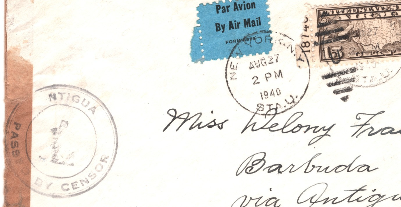 USA *ANTIGUA* BWI CENSOR WW2 Air Mail 1940 Cover 15c {samwells-covers}YH328