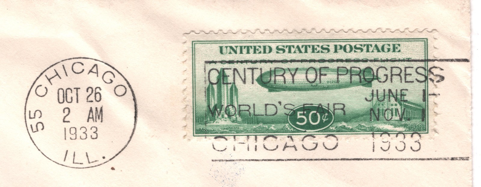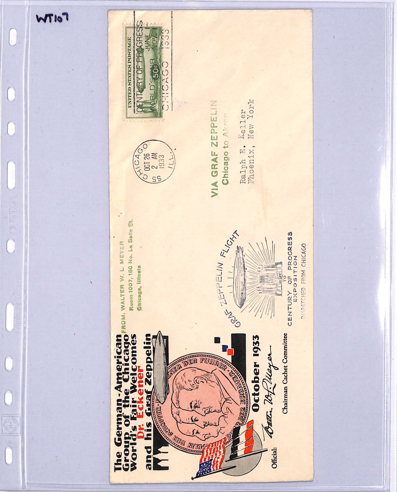 USA Scott #C18 50c Air ZEPPELIN Cover 1933 CHICAGO CENTURY OF PROGRESS EXHIBITION Phoenix NY WT107