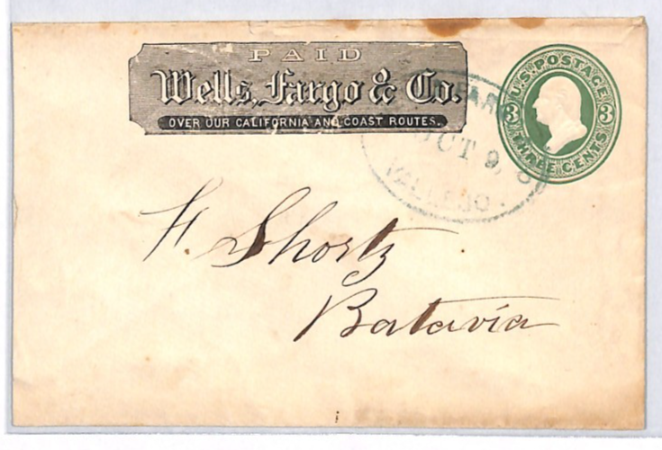 USA California WELLS FARGO 3c Postal Stationery Cover *VALLEJO* OVAL Dated YH408