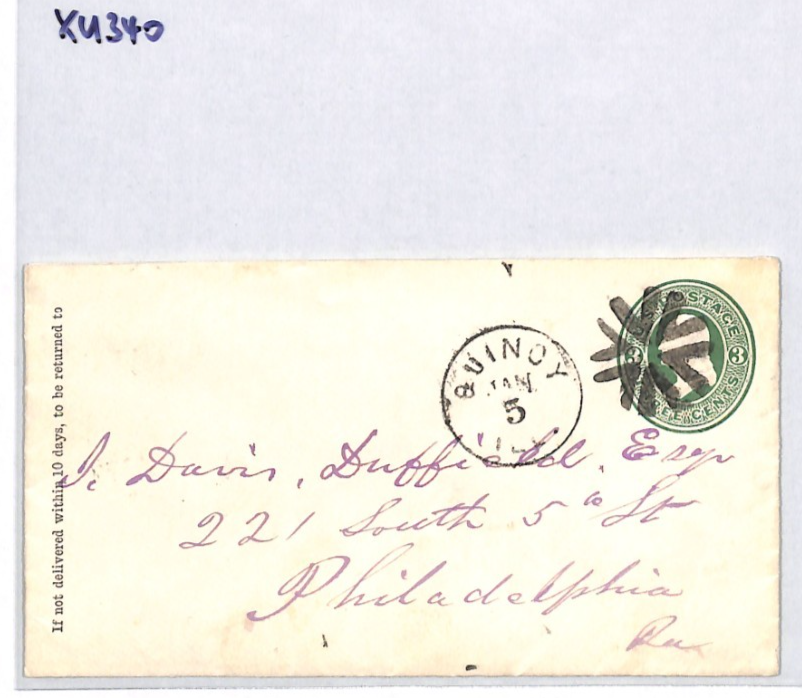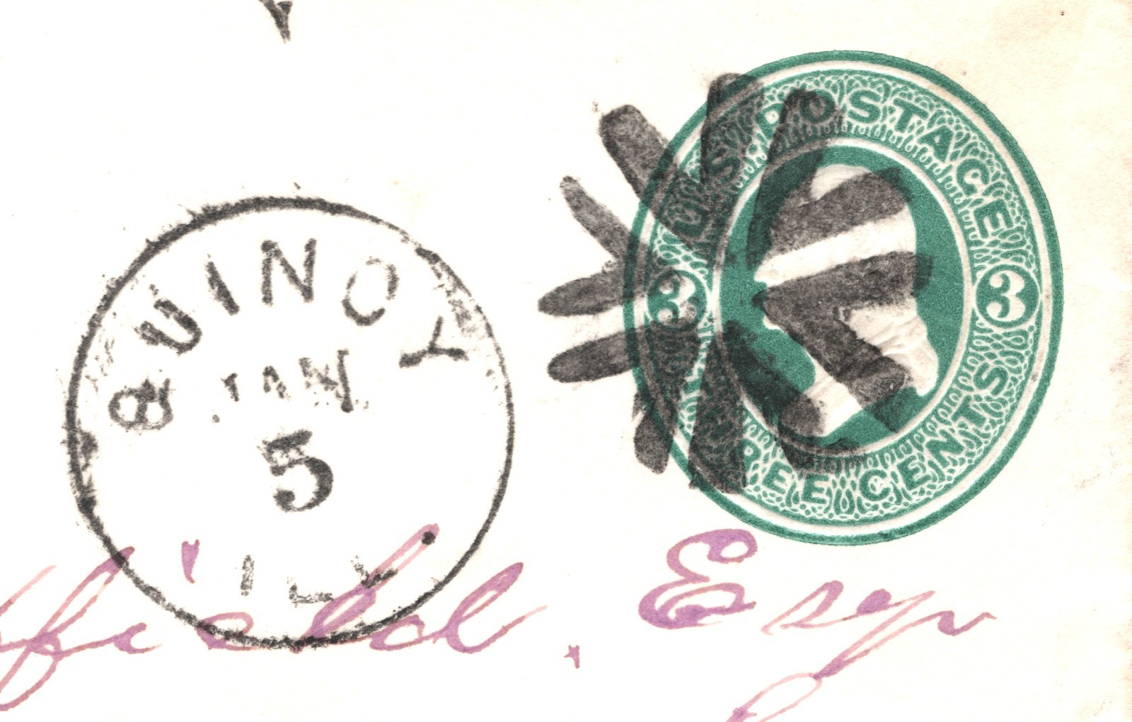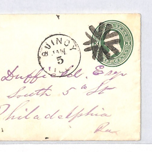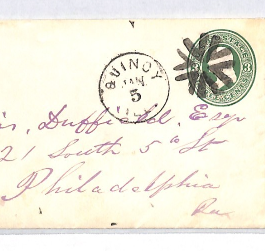 USA Classic Cover FANCY CANCEL Stationery 3c Green *QUINCY* Illinois XU340