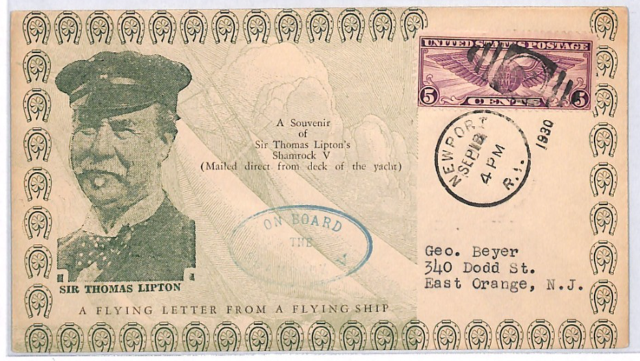 USA *Shamrock V* Sir Thomas Lipton Souvenir Cover 1930 {samwells-covers}YH440