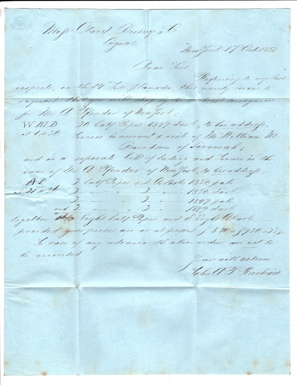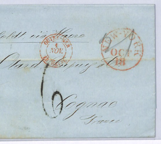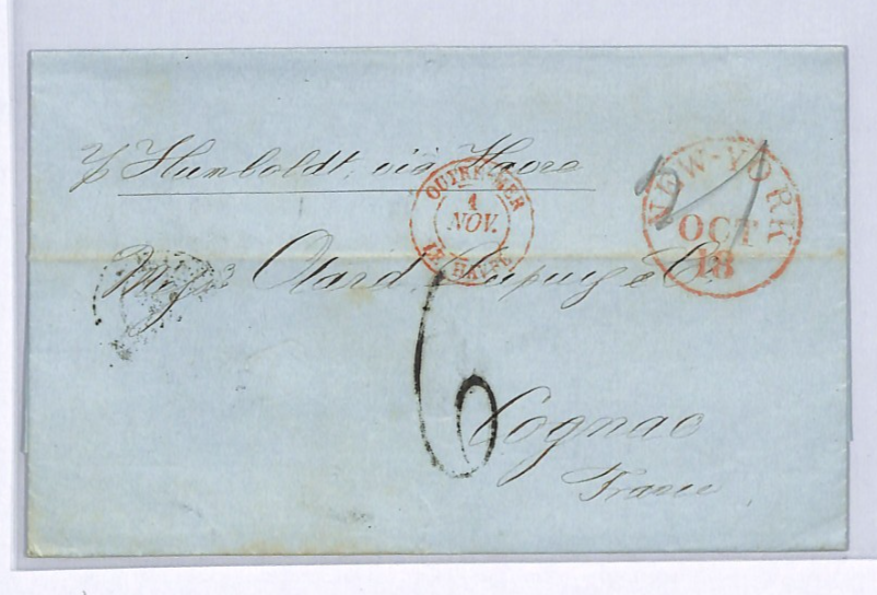 USA/FRANCE TRANSATLANTIC Cover 1851 New York Cognac Entire Letter EL XK212