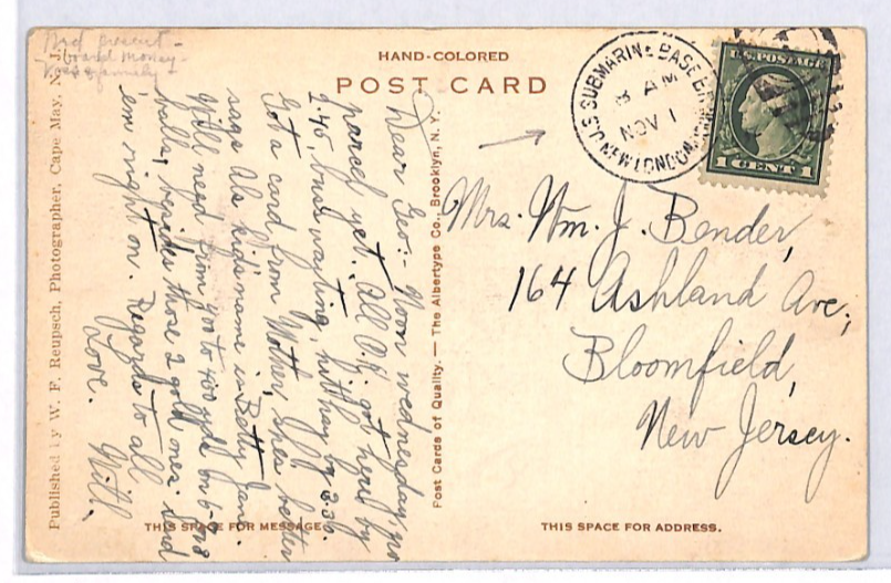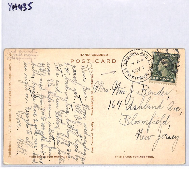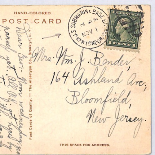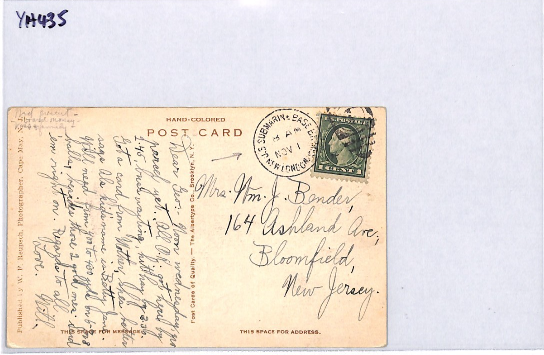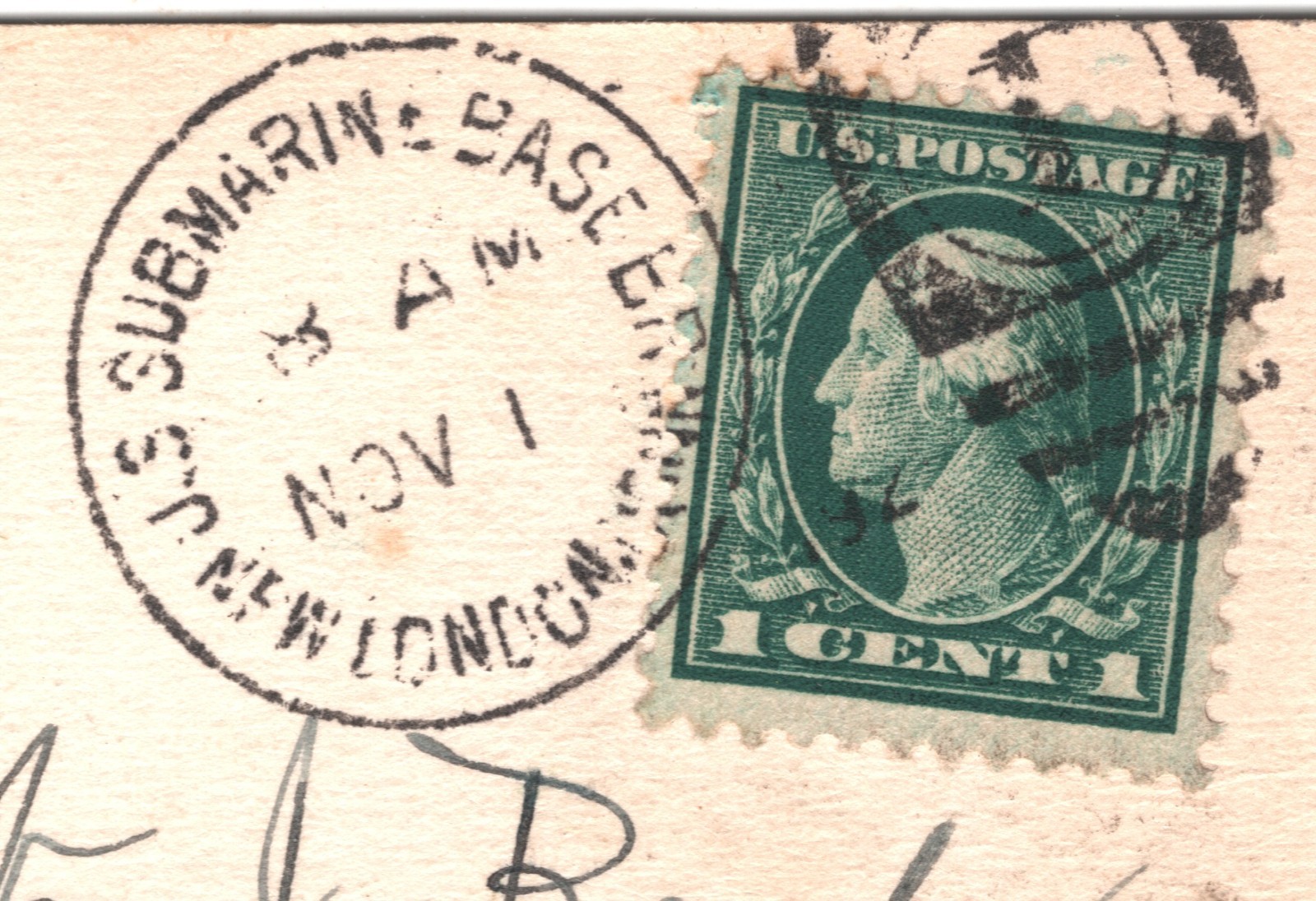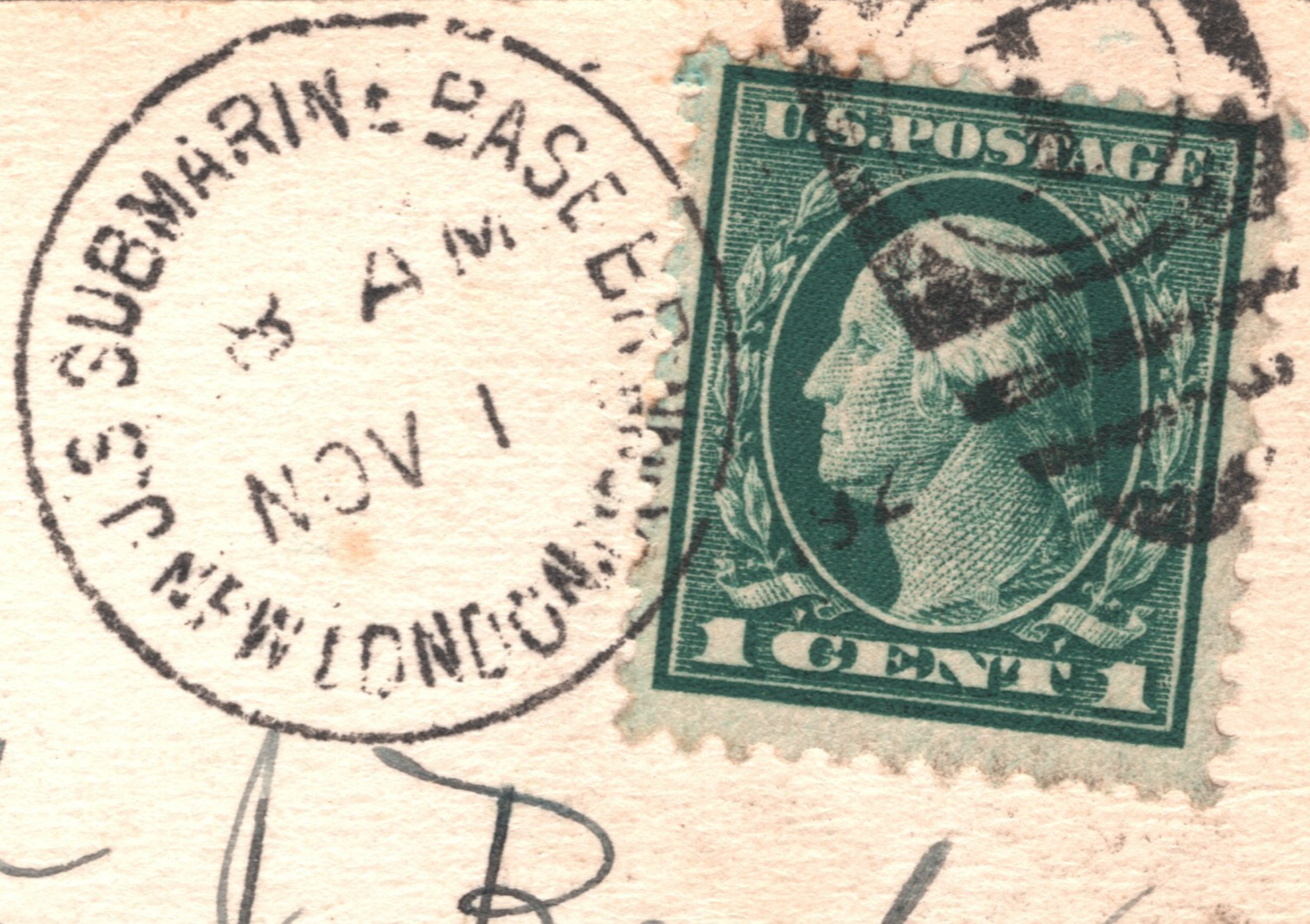 USA NAVAL POST OFFICE *Submarine Base* DUPLEX New London Postcard (WW1)? YH435