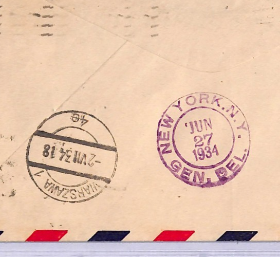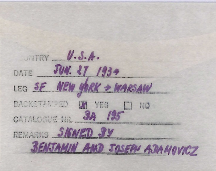 USA/POLAND Transatlantic Air Mail Cover BENJAMIN & JOSEPH ADAMOWICZ Bros Signed Warsaw 1934 WT116