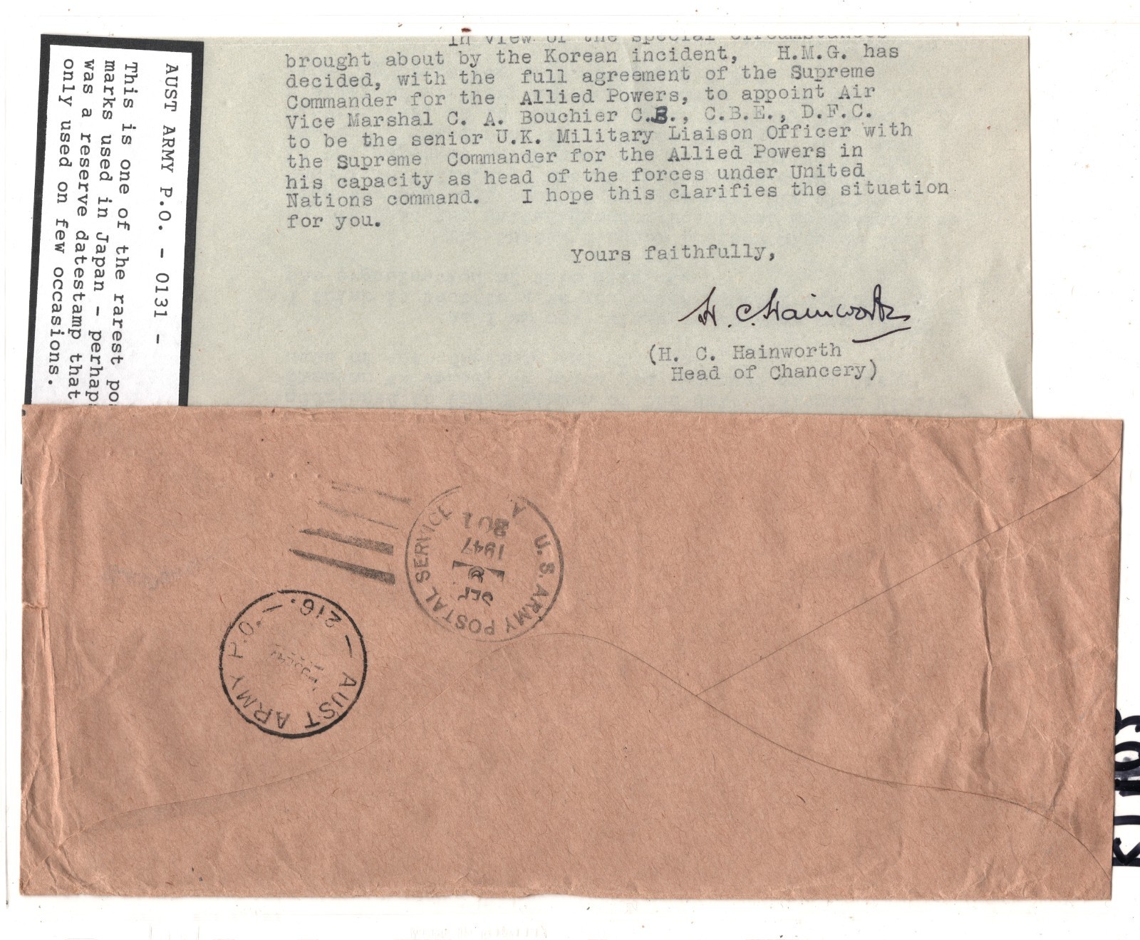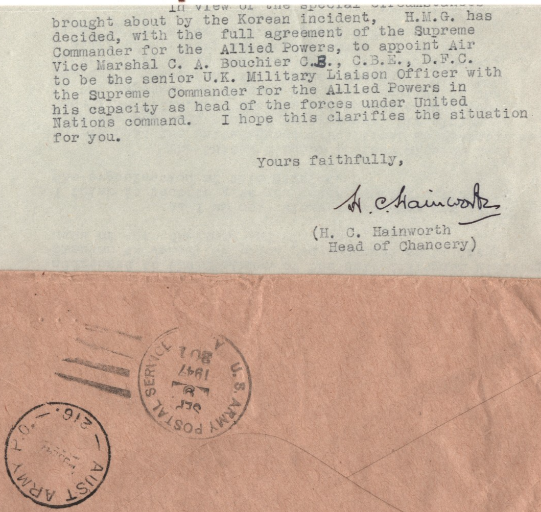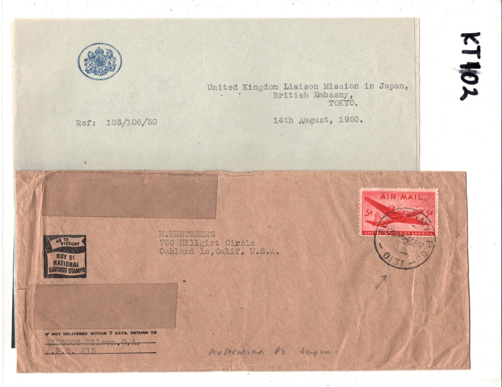 JAPAN OCCUPATION AUSTRALIA FPO USA FRANKING Cover UK EMBASSY Tokyo Contents 1947 KT102