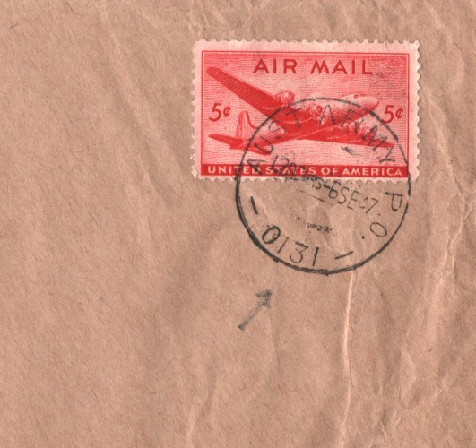 INTERESTING USAGE OF USA AIR 5c at AUSTRALIAN FPO #0131. RARE. Fine for an item of this type & period. Please look at all the scans to help form your own opinion (WAF).