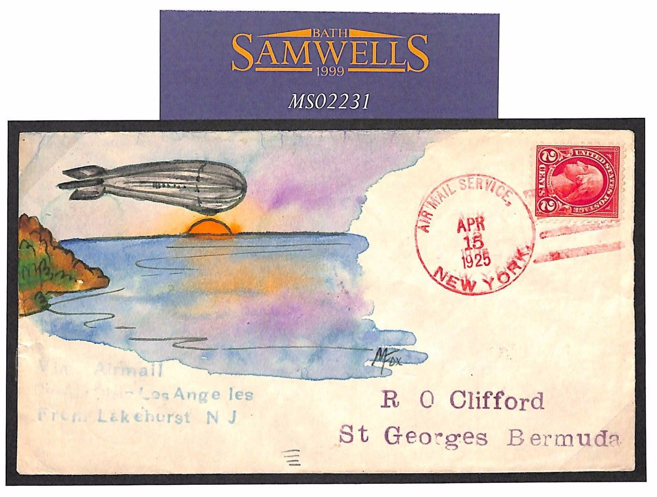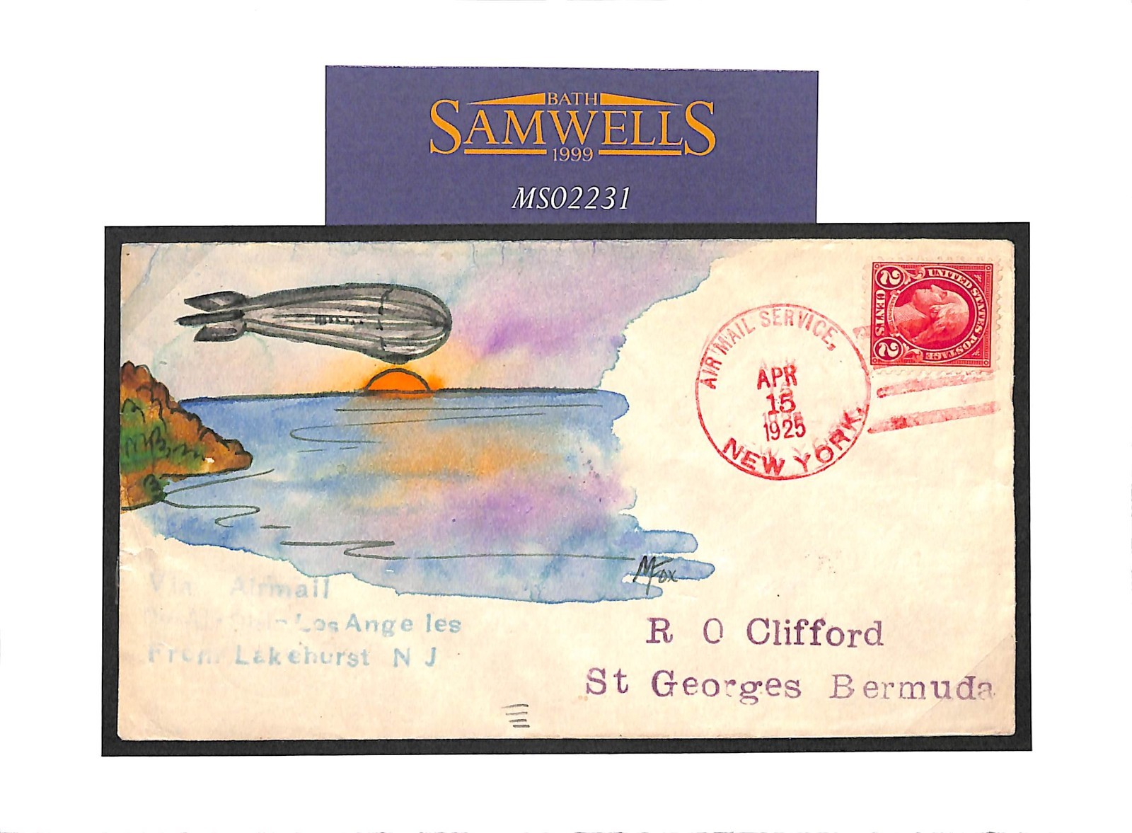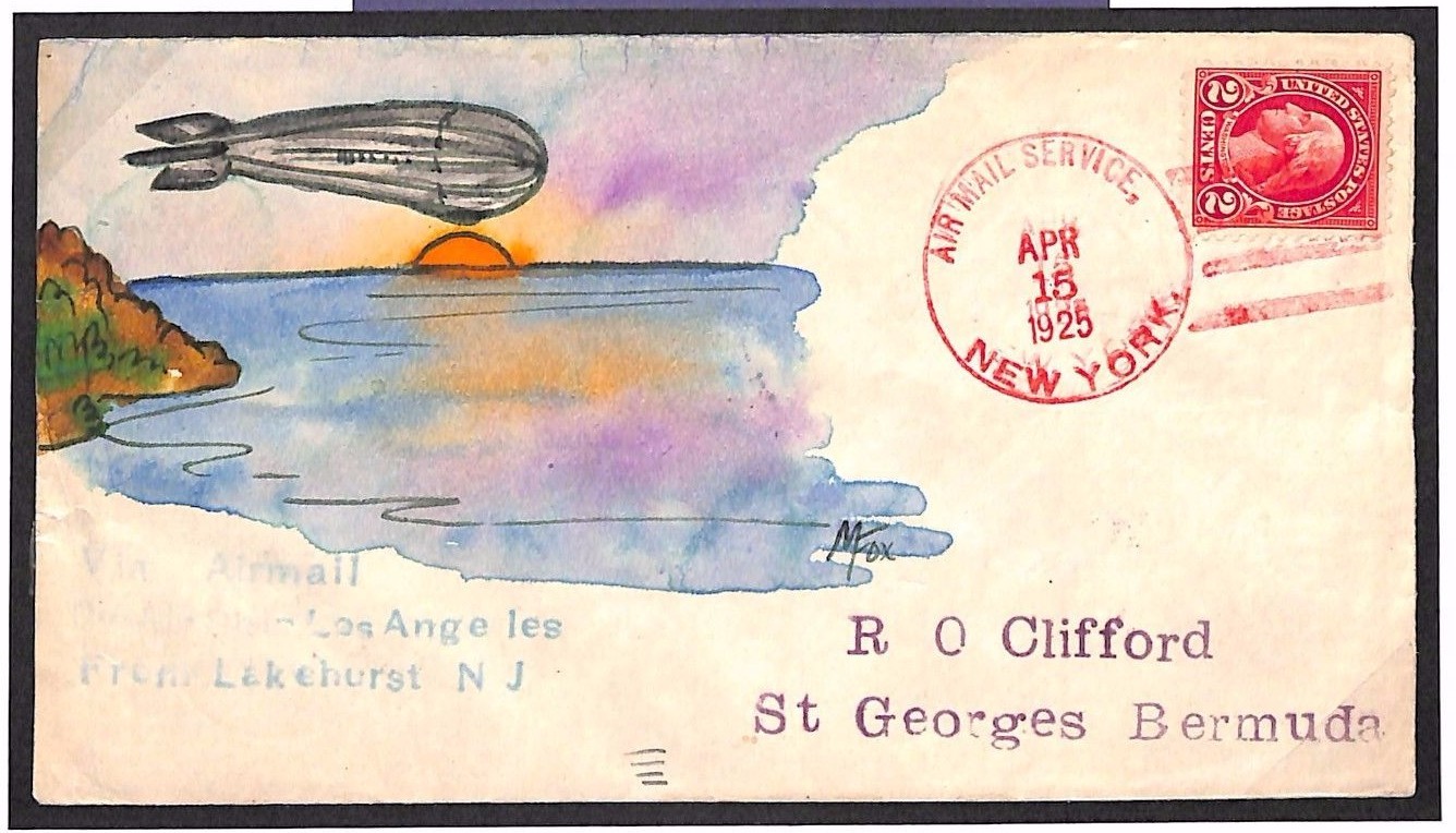 USS LOS ANGELES Hand-Illustrated PAINTED Bermuda Flight Cover 1925 AIRSHIP (ex Zeppelin ZR-3) MS2231*