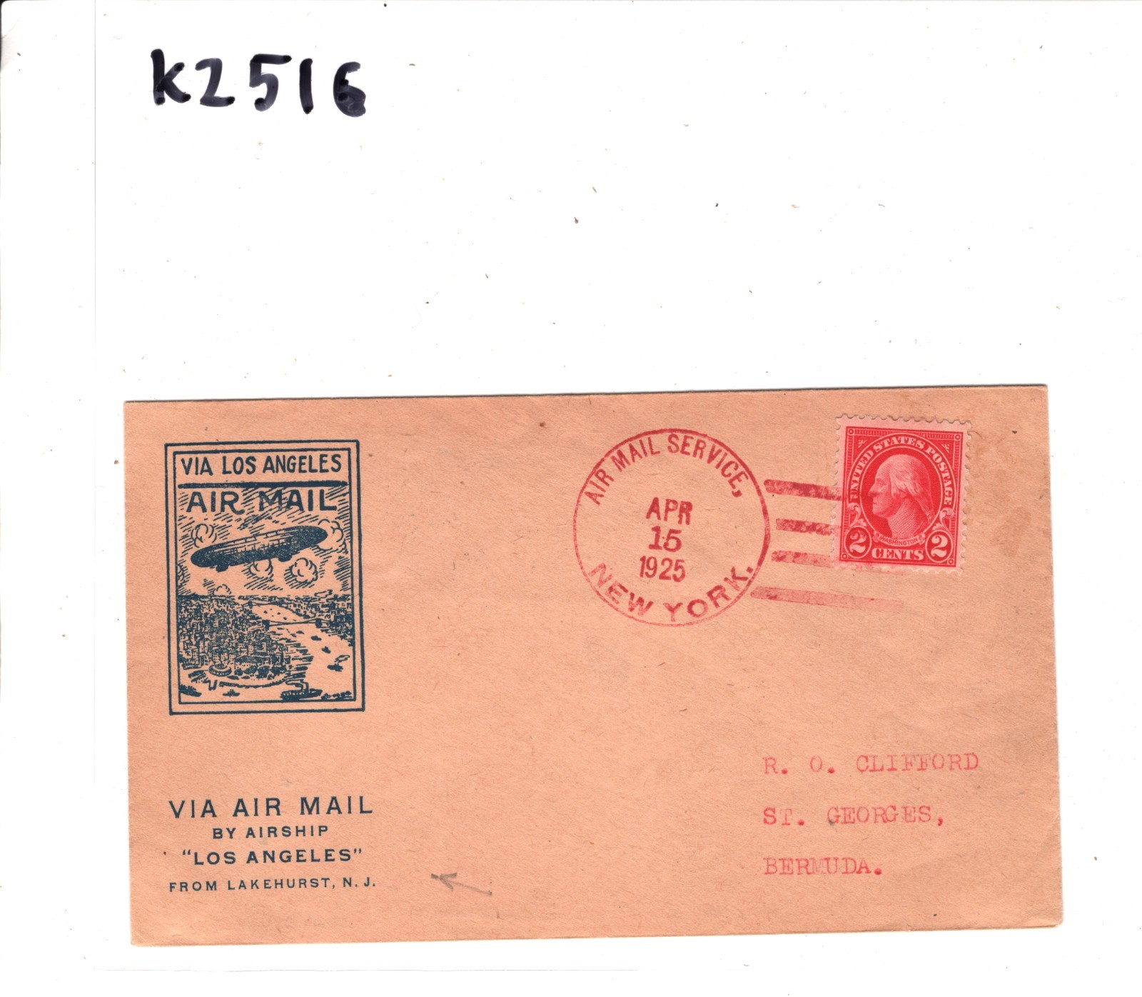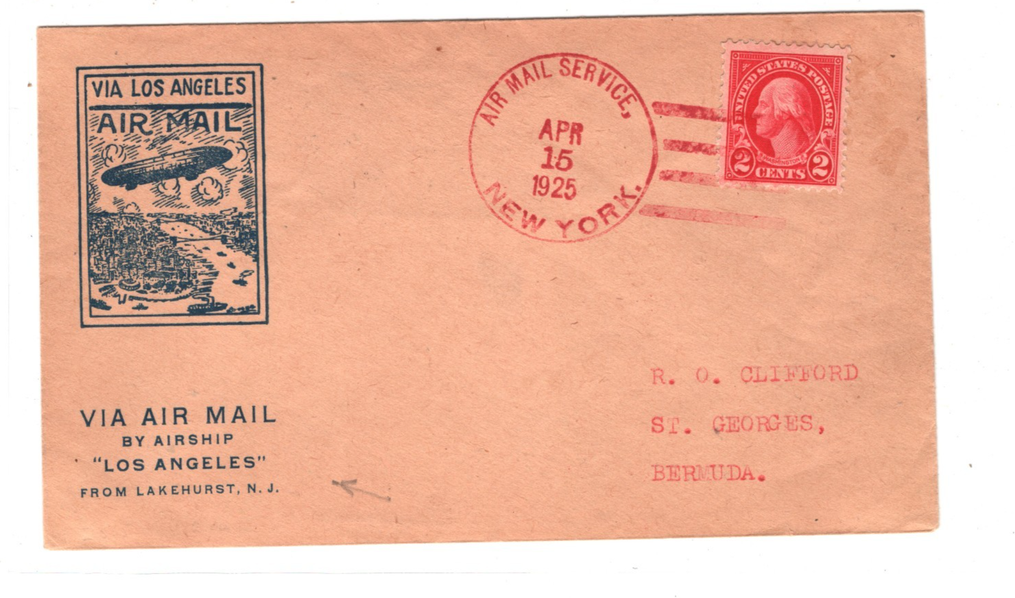 USS LOS ANGELES (ZEPPELIN ZR-3/LZ.126) Air Mail Cover 1925 BERMUDA St Georges KZ516USA Lakehurst