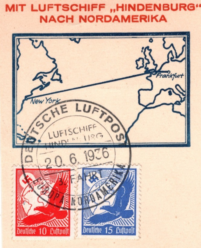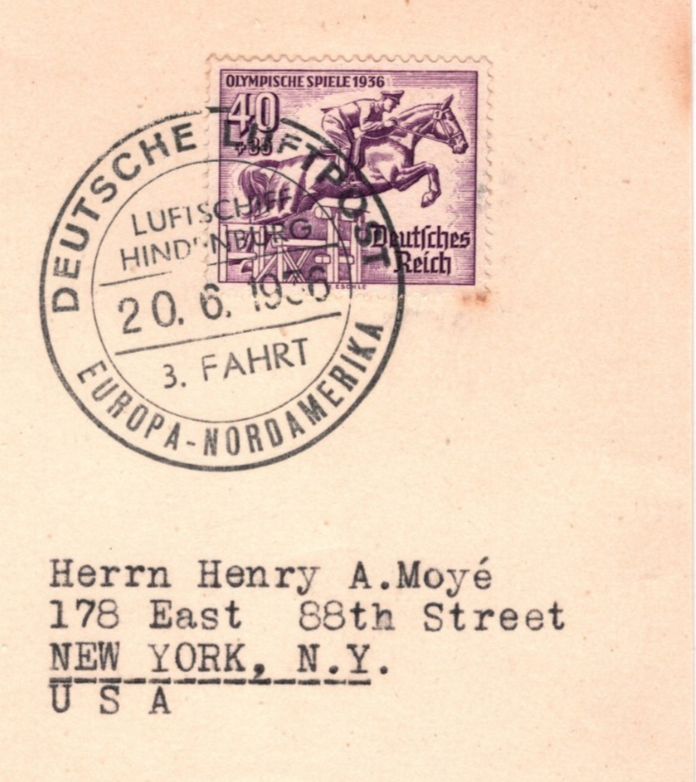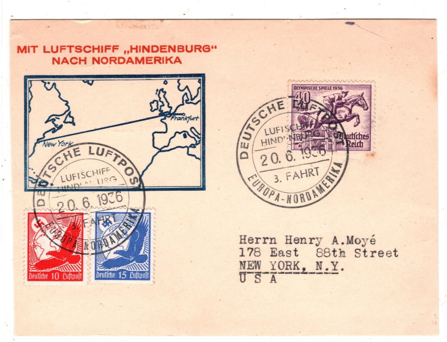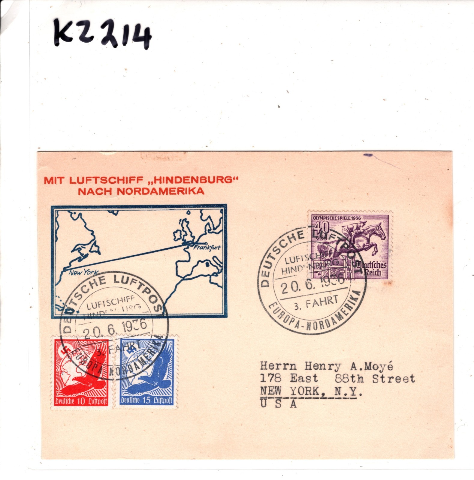 ZEPPELIN HINDENBURG 1936 Card Air Mail *3 FAHRT* USA New York Germany KZ214
