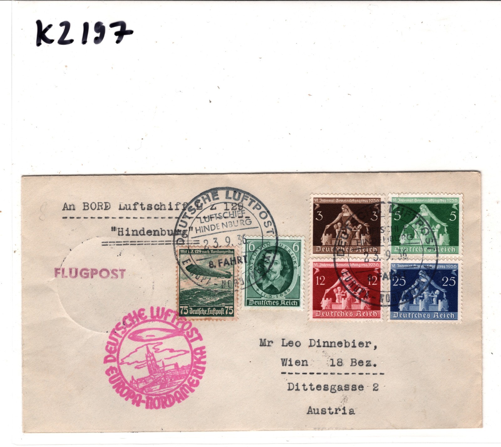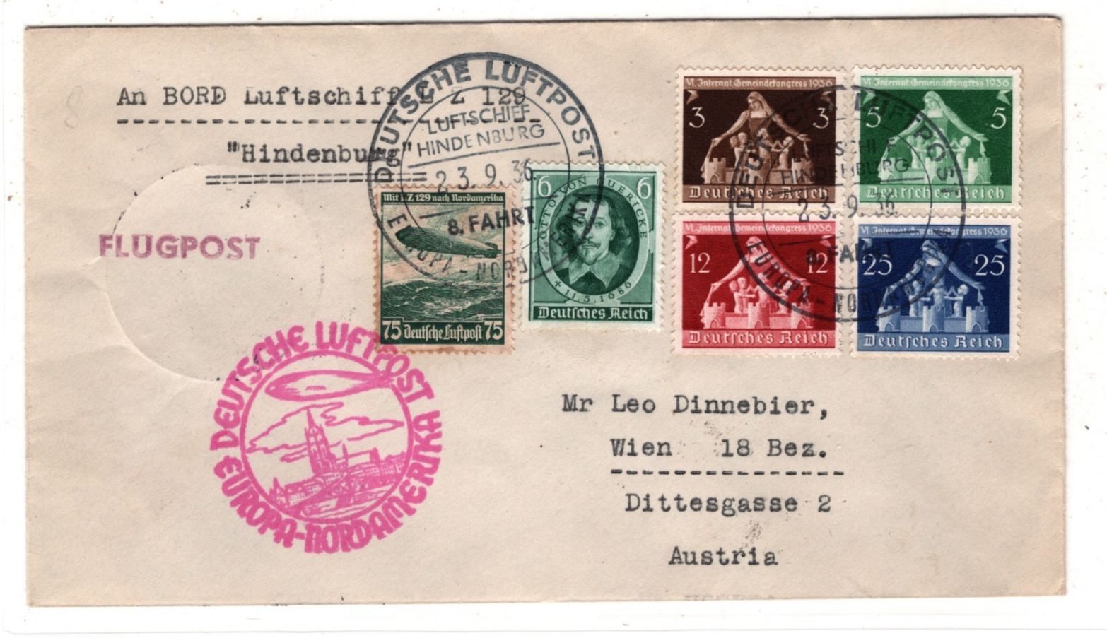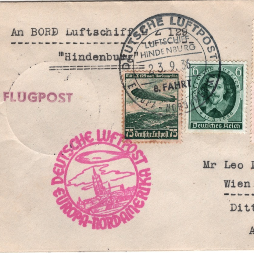 ZEPPELIN HINDENBURG 1936 Cover Air Mail *NORDAMERIKA 8.FAHRT* CDS Austria KZ197