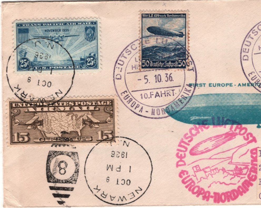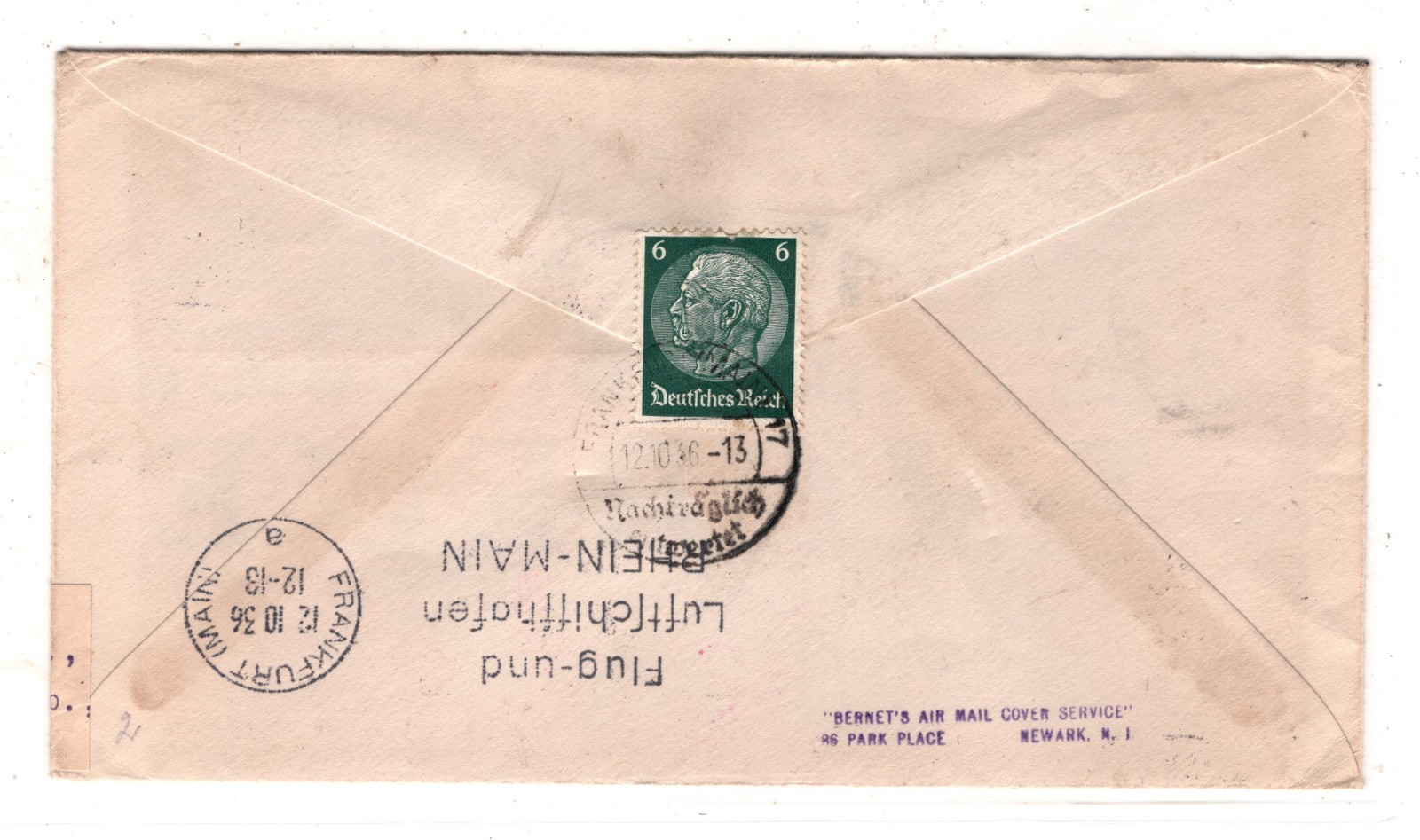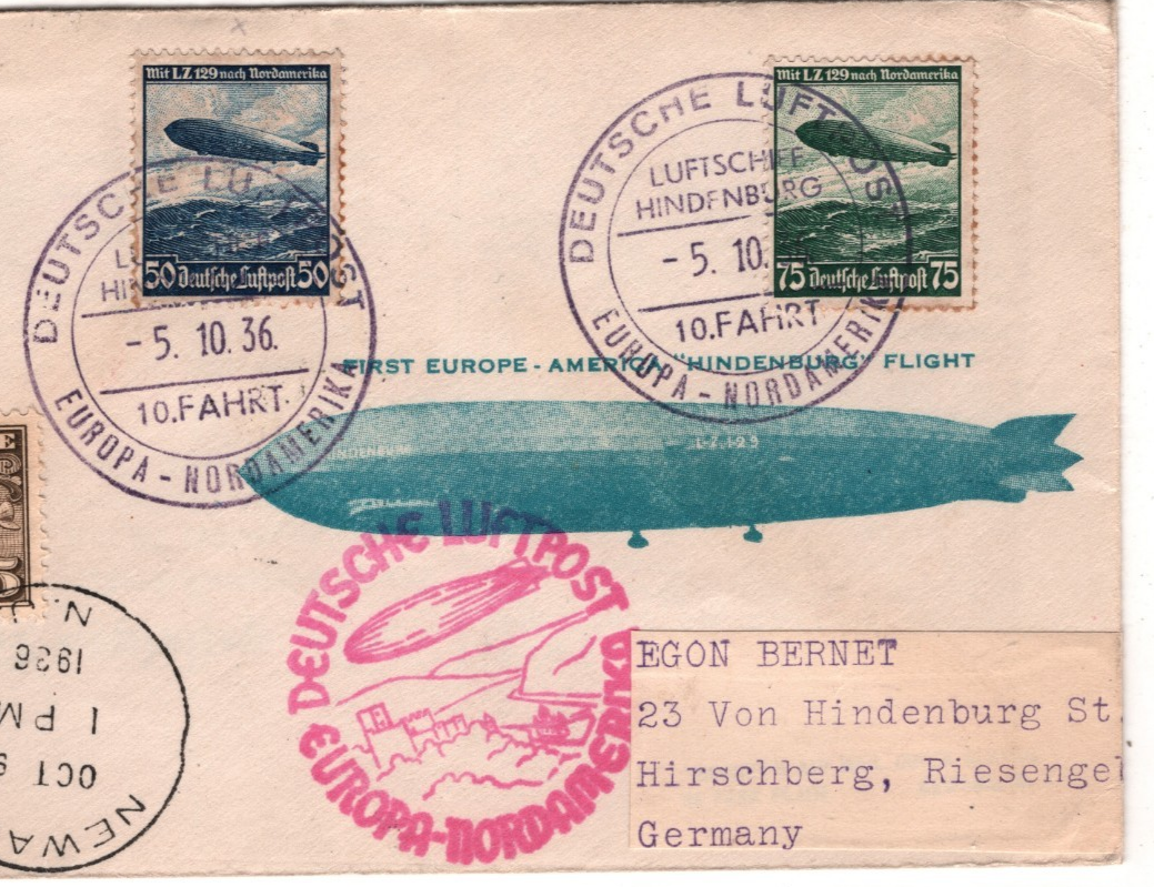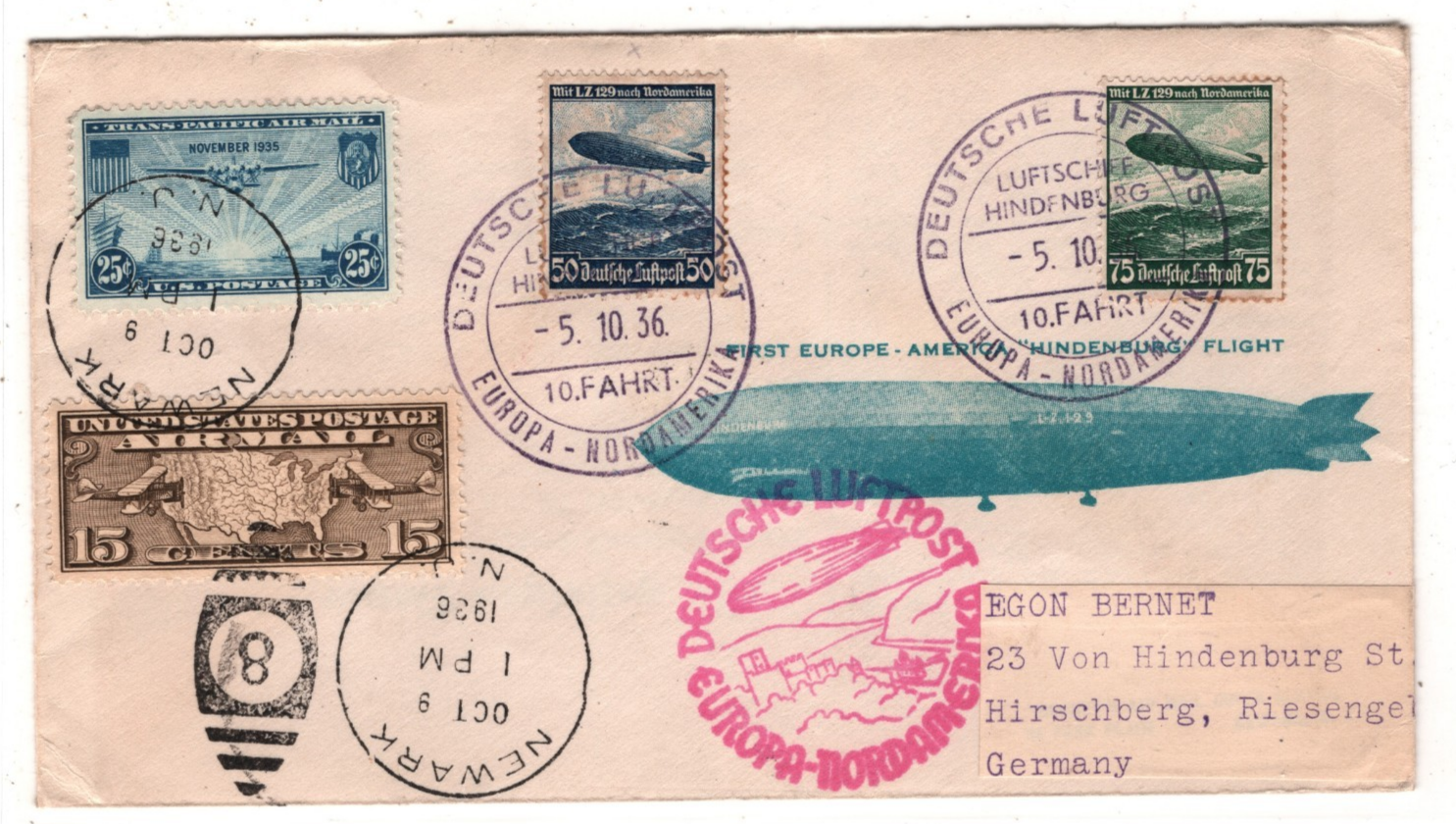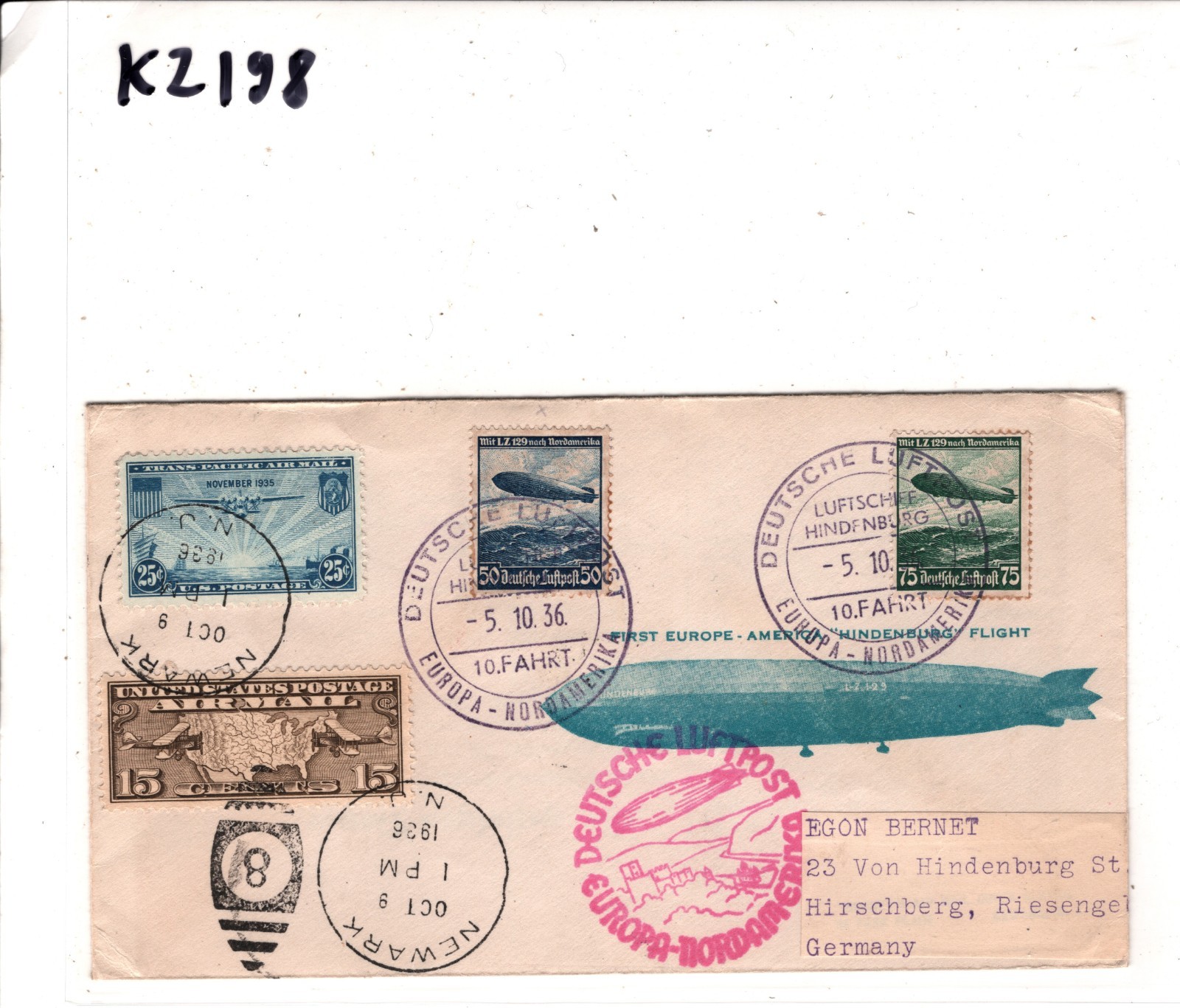 ZEPPELIN HINDENBURG 1936 USA *10 FAHRT* Cover Air Mail Hirschberg Germany Newark NJ KZ198