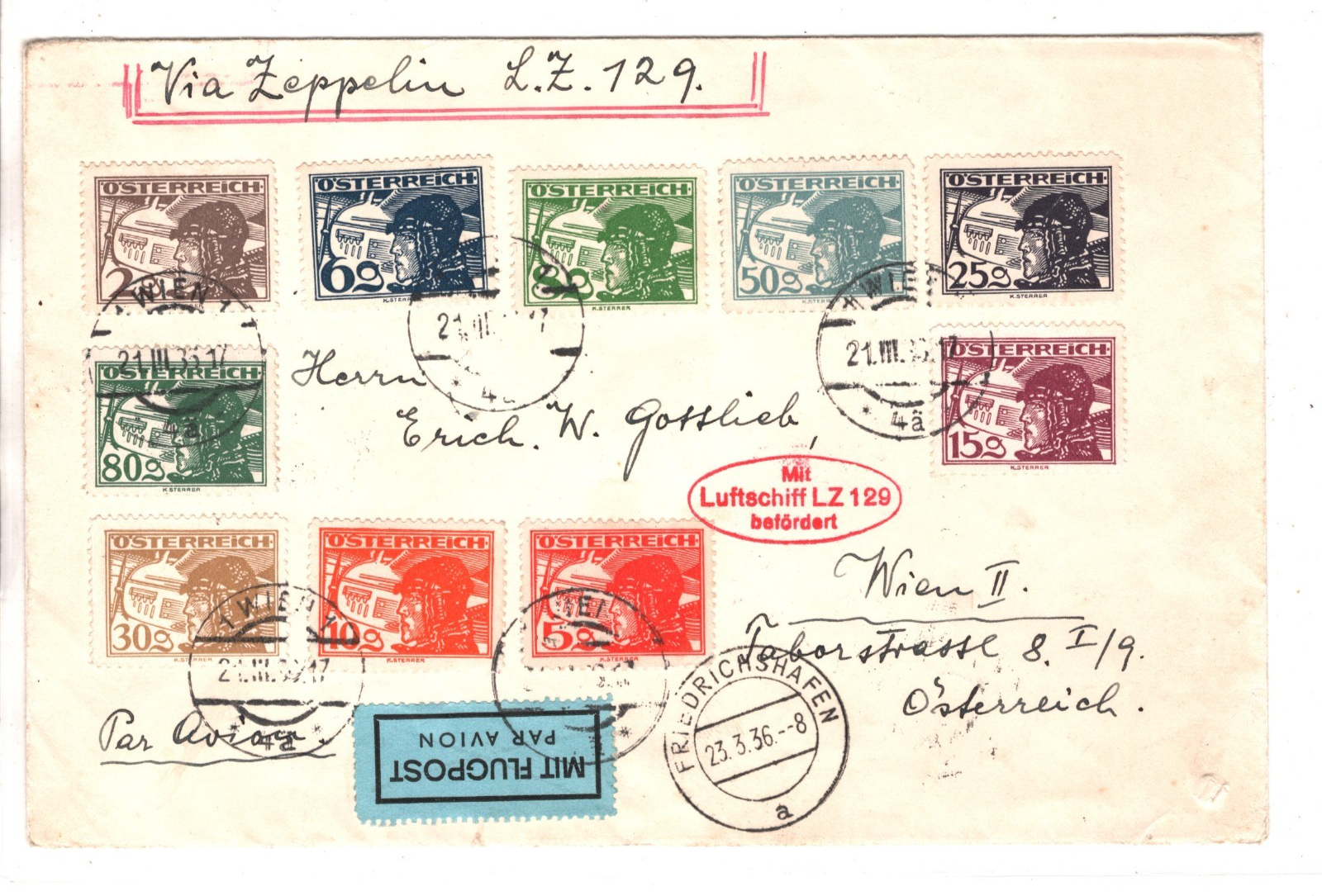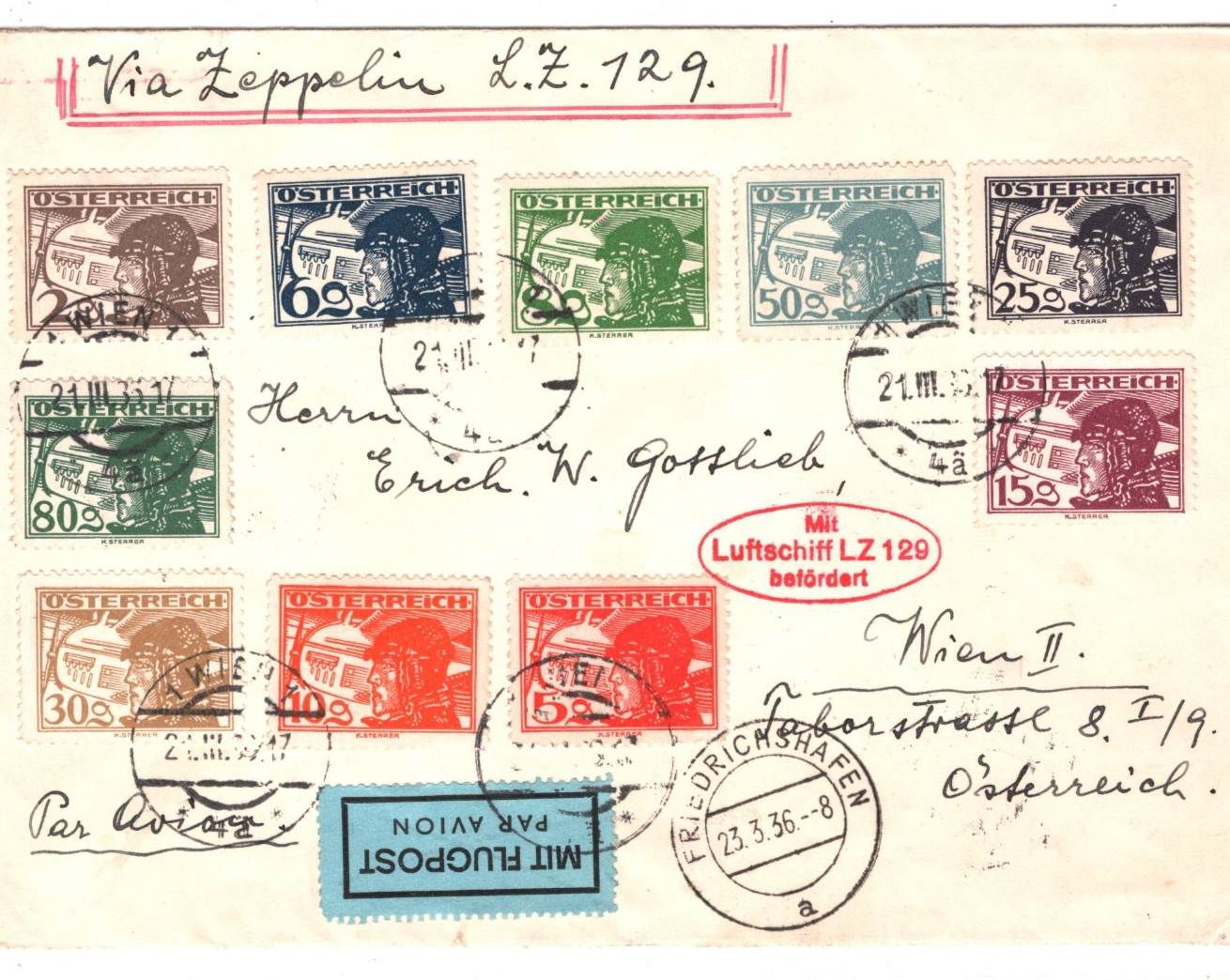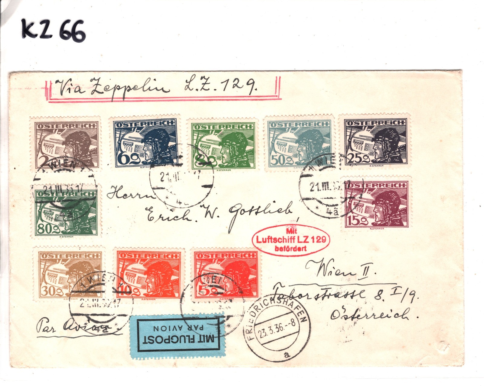 ZEPPELIN *HINDENBURG* Cover AUSTRIA Air Mail Vienna 1936 Friedrichshafen KZ66