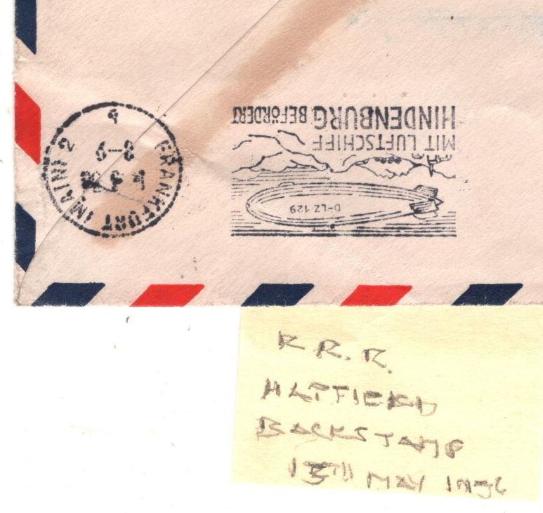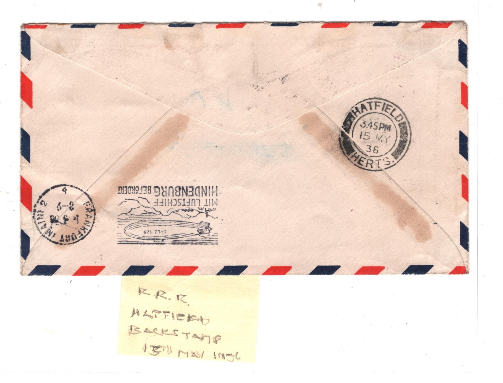 ZEPPELIN HINDENBURG Cover USA Air Mail 1936 GB *HATFIELD* CDS Herts RARE KZ165