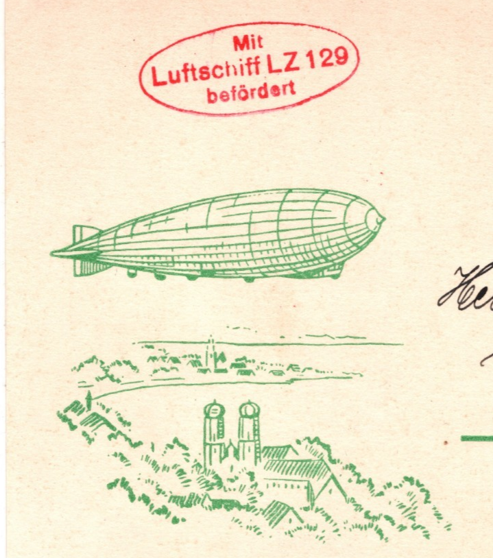 ZEPPELIN Illustrated HINDENBURG 1936 Card Air Mail DANZIG Friedrichshafen KZ208