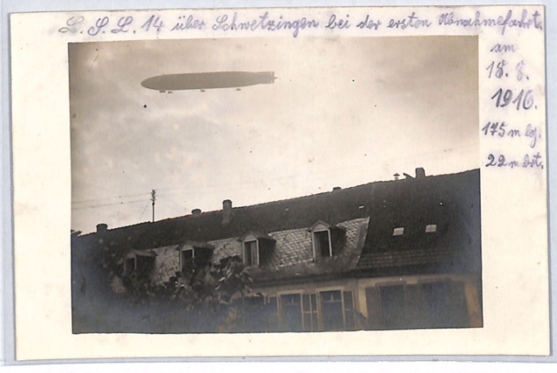 ZEPPELIN Schwetzingen WWI Postcard 1916 Germany {samwells-covers}PZ172