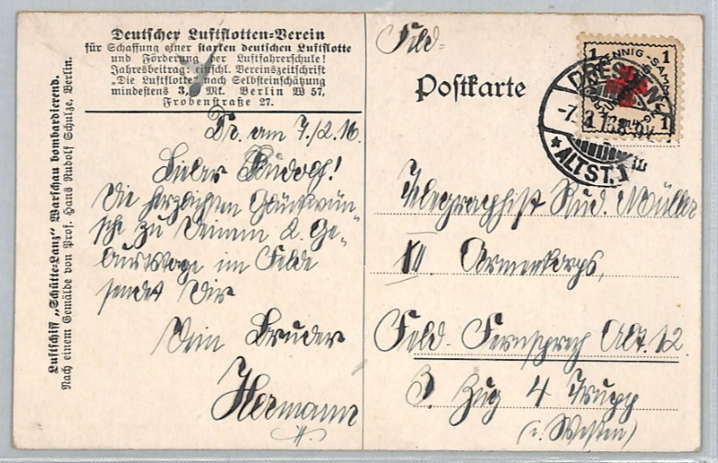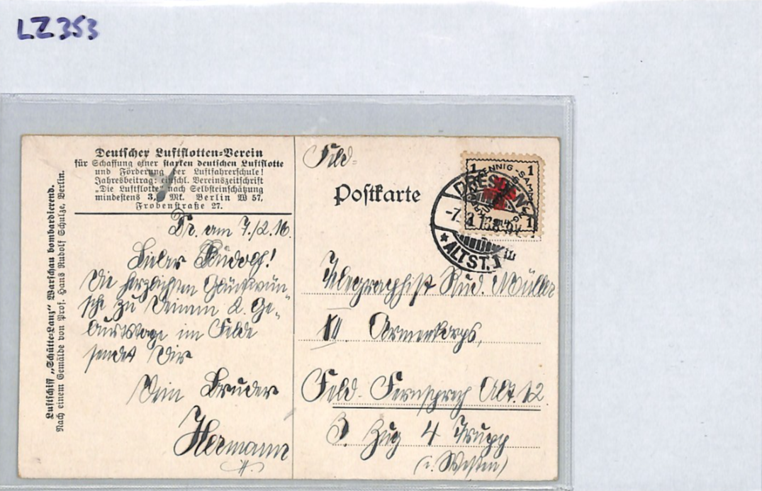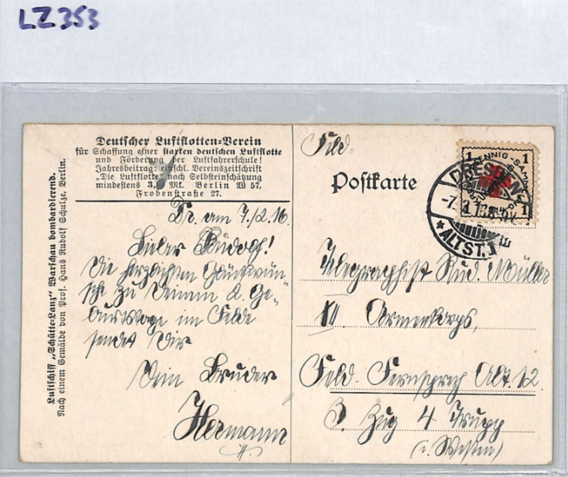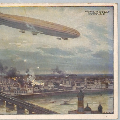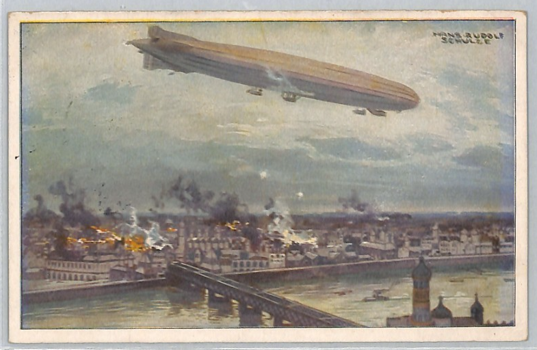 ZEPPELIN (Schutte-Lanz Airship) ART WW1 Postcard WARSAW AIR RAID Used 1918 LZ353