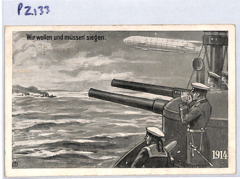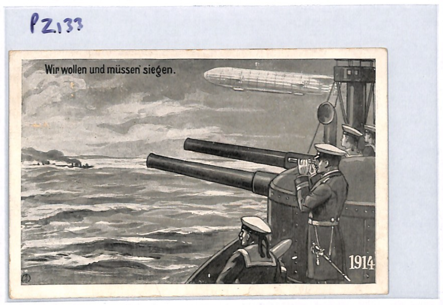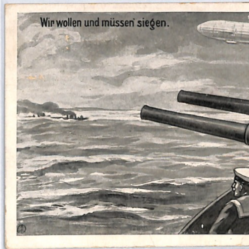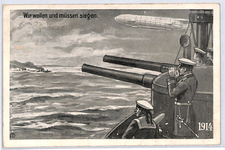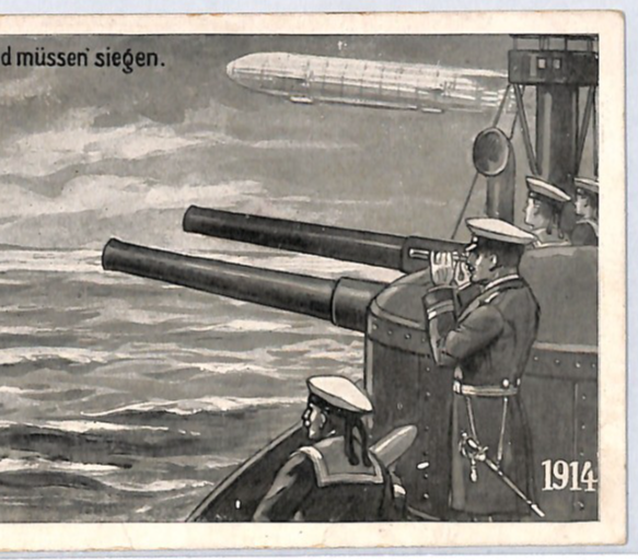 ZEPPELIN WW1 PROPAGANDA Postcard ART Naval Guns SHIP England Coast 1914 Germany PZ133