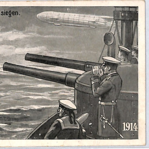ZEPPELIN WW1 PROPAGANDA Card ART Naval Gun SHIP England Coast 1914 Germany PZ133
