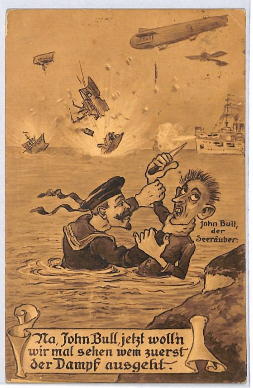ZEPPELIN *John Bull* WWI Propaganda Postcard 1919 Germany {samwells-covers}PZ189